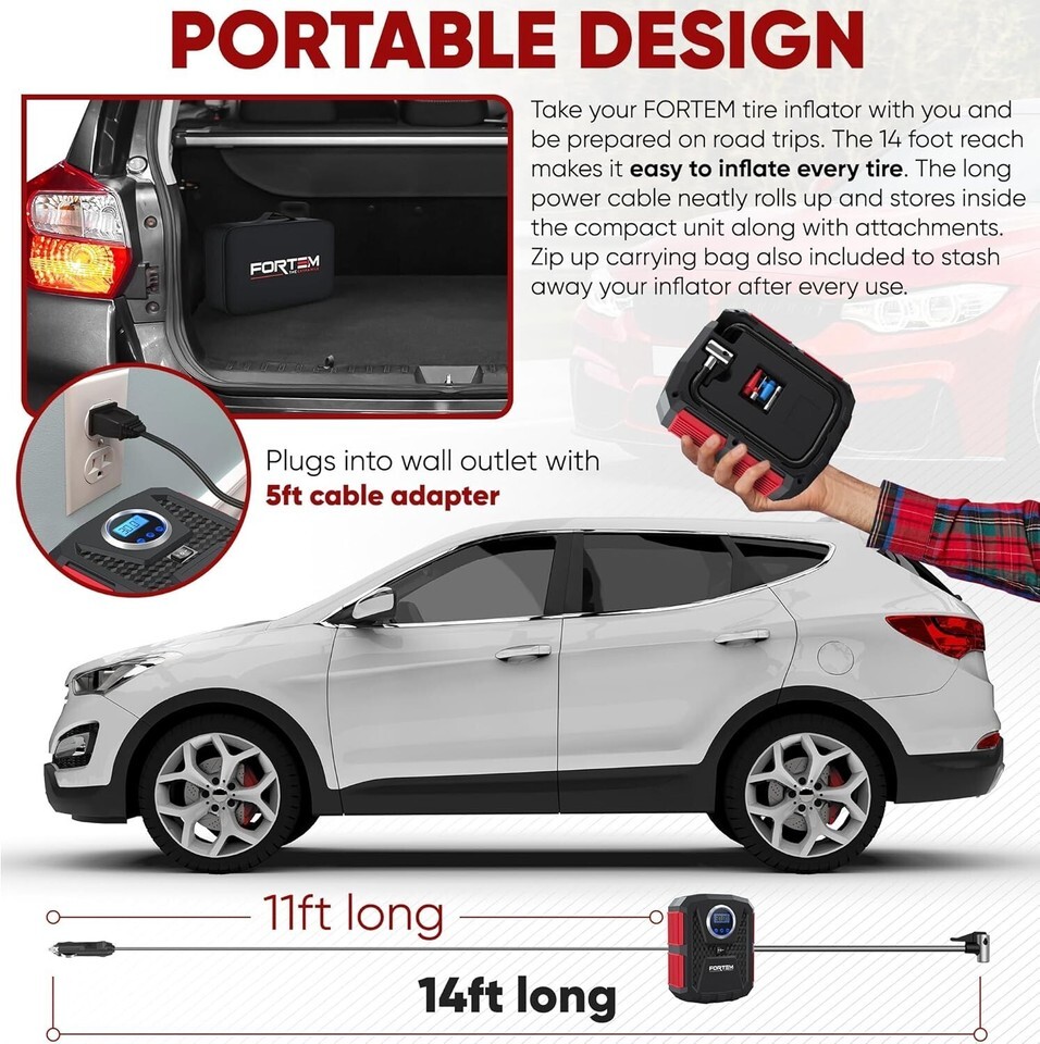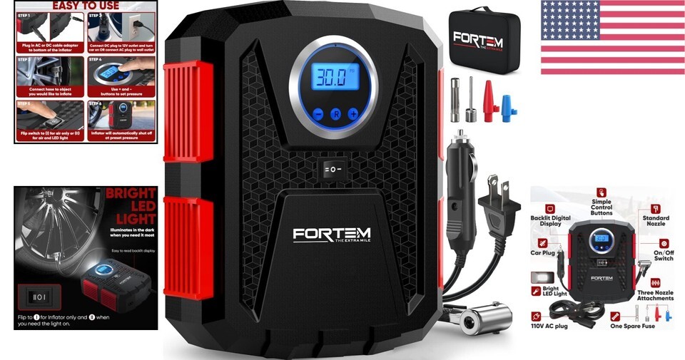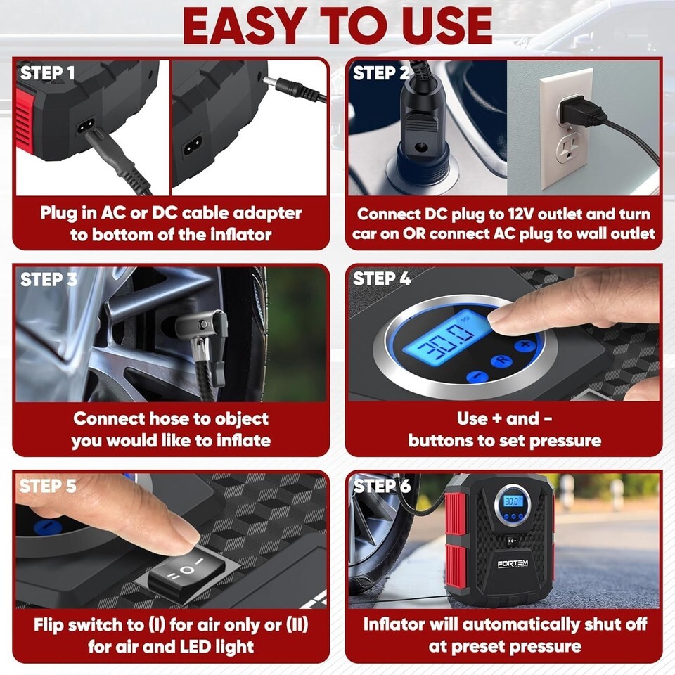 - Compact Tire Inflator with LED Light - 150 PSI Automatic Pump for All Vehicles