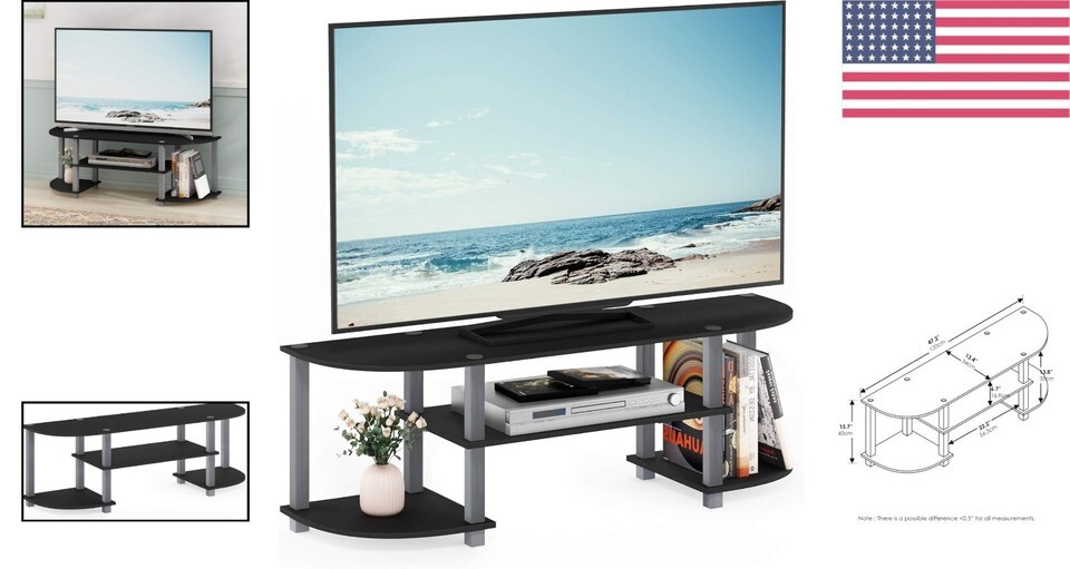 - Compact Turn-S-Tube Black/Grey Entertainment Center with 3 Shelves - Easy Setup