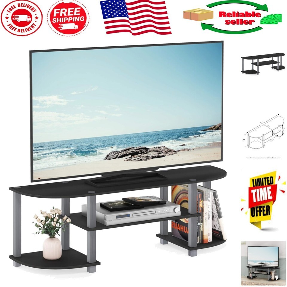 Compact Turn-S-Tube Black/Grey Entertainment Center with 3 Shelves - Easy Setup