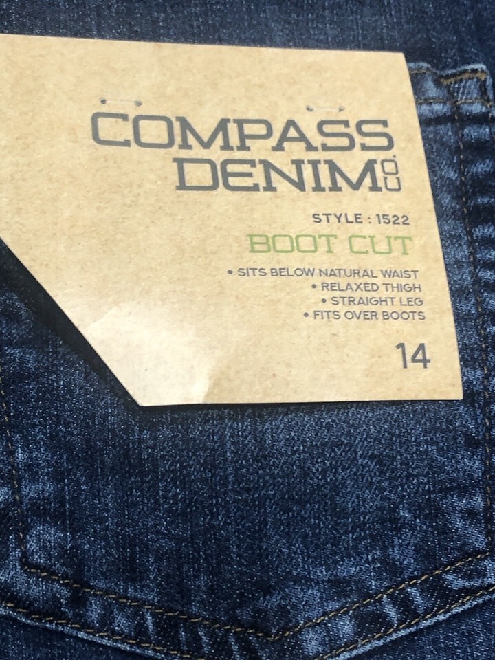 - Compass Denim 14R Boot Cut Blue Jeans-Women’s Style 1522. Medium Wash