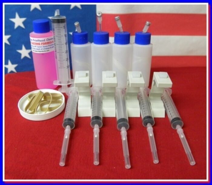 4 - 18 Gage Purge Tip with syringes used to remove ink from the cartridges