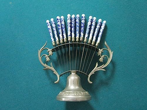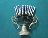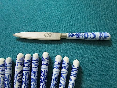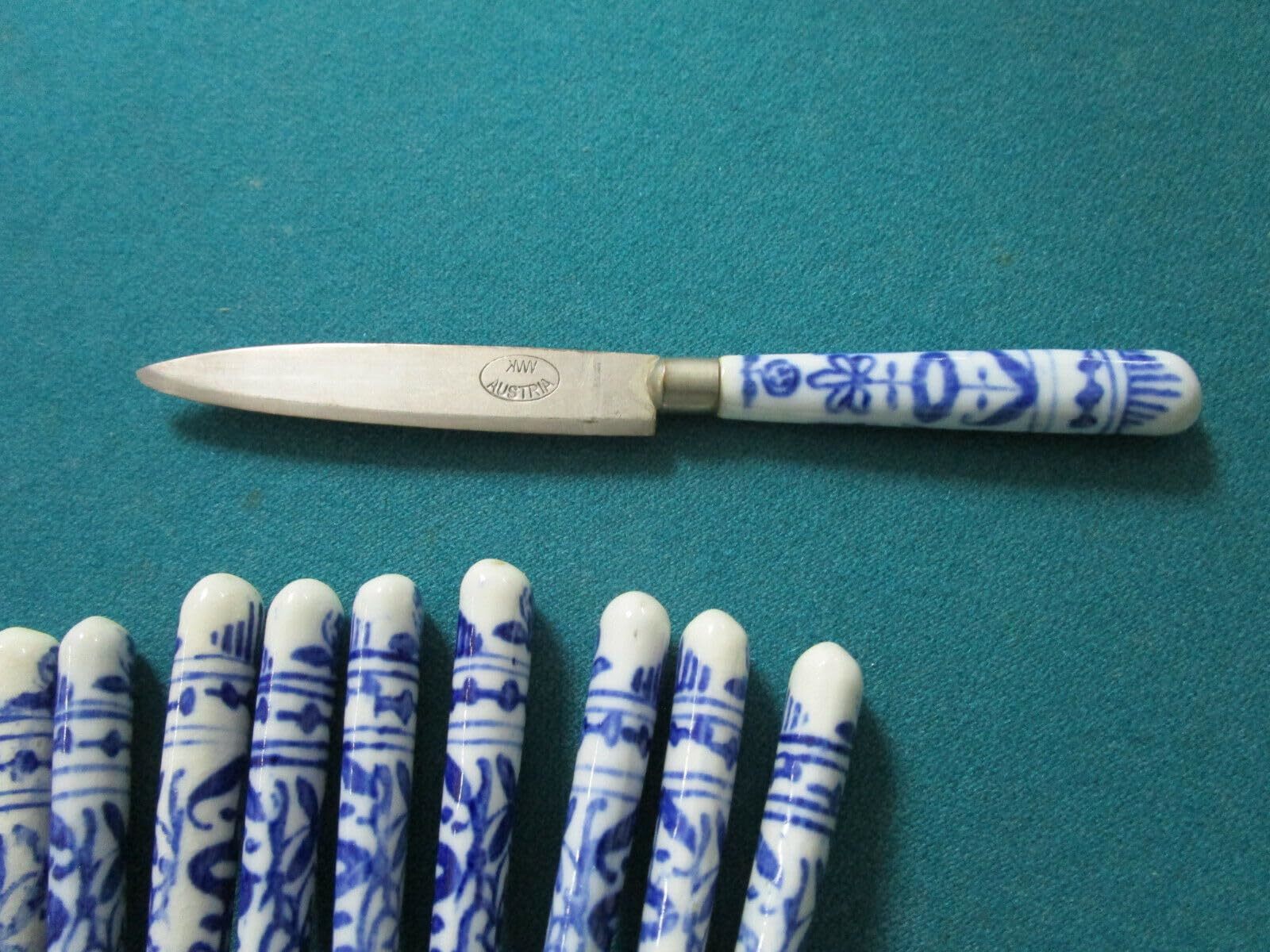 1- AW AUSTRIA 12 , 6" KNIVES WADSWORTH WITH SILVERPLATE HOLDER FLOW BLUE HANDLE