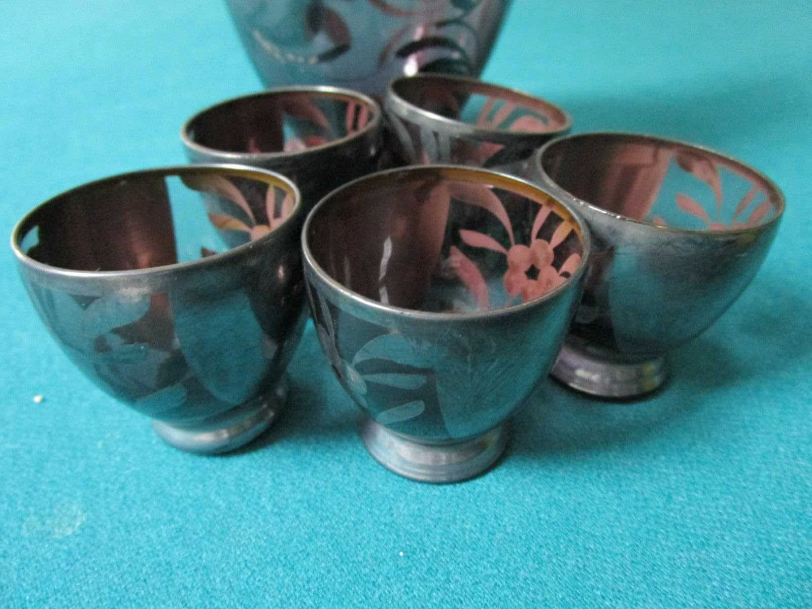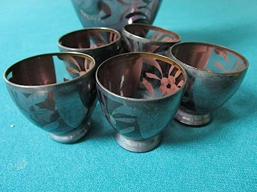 - Compatible with Antique Silver Overlay Decanter and Cups Blue and Purple Rare Pi