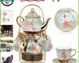 - Complete 20-Pc Porcelain Tea Set with Metal Holder for Elegant Gatherings