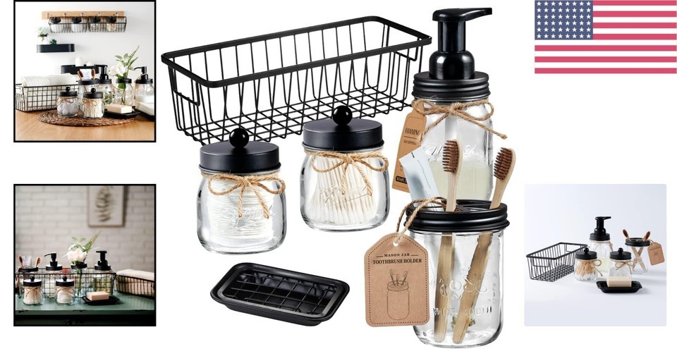 Transform your bathroom into a stylish sanctuary with our exquisite Complete 6-Piece Bathroom Set. Perfectly crafted for those who appreciate the charm of farmhouse decor, this collection includes intricately designed mason jars and a sleek metal wire basket, ensuring both functionality and elegance.