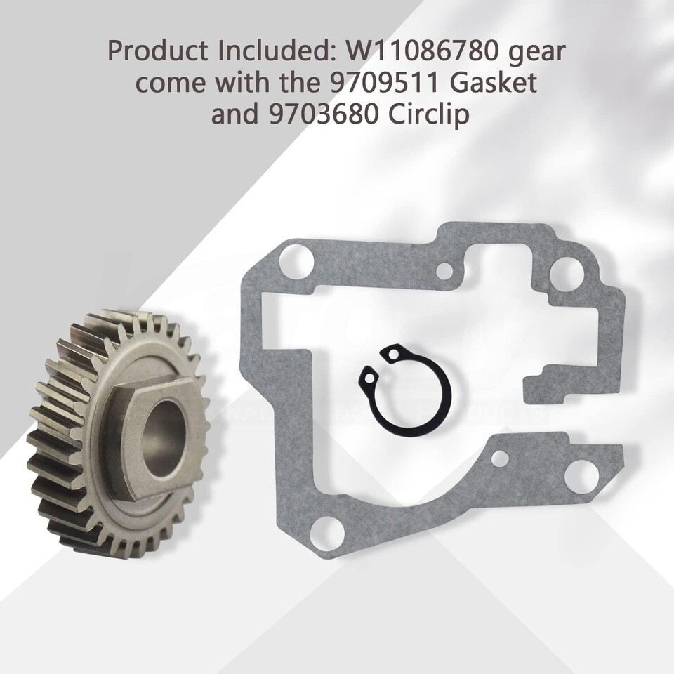 Includes: W11086780 Replacement Gear, 9709511 Gasket, and 9703680 Circlip
