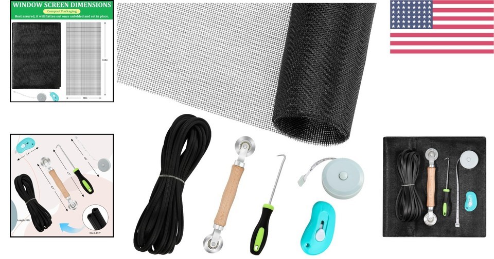 - Complete Screen Door & Window Repair Kit: 6-Piece Fiberglass Set, 48" x 118"