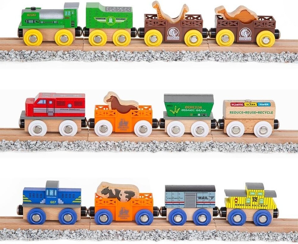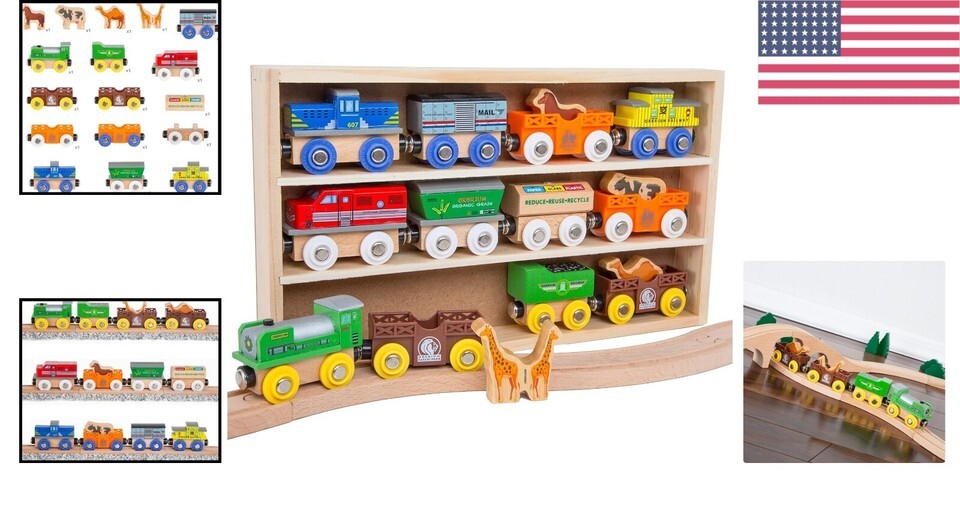 - Complete Set of 12 Wooden Train Cars & Animals - Kid-Safe Fun for All Ages!