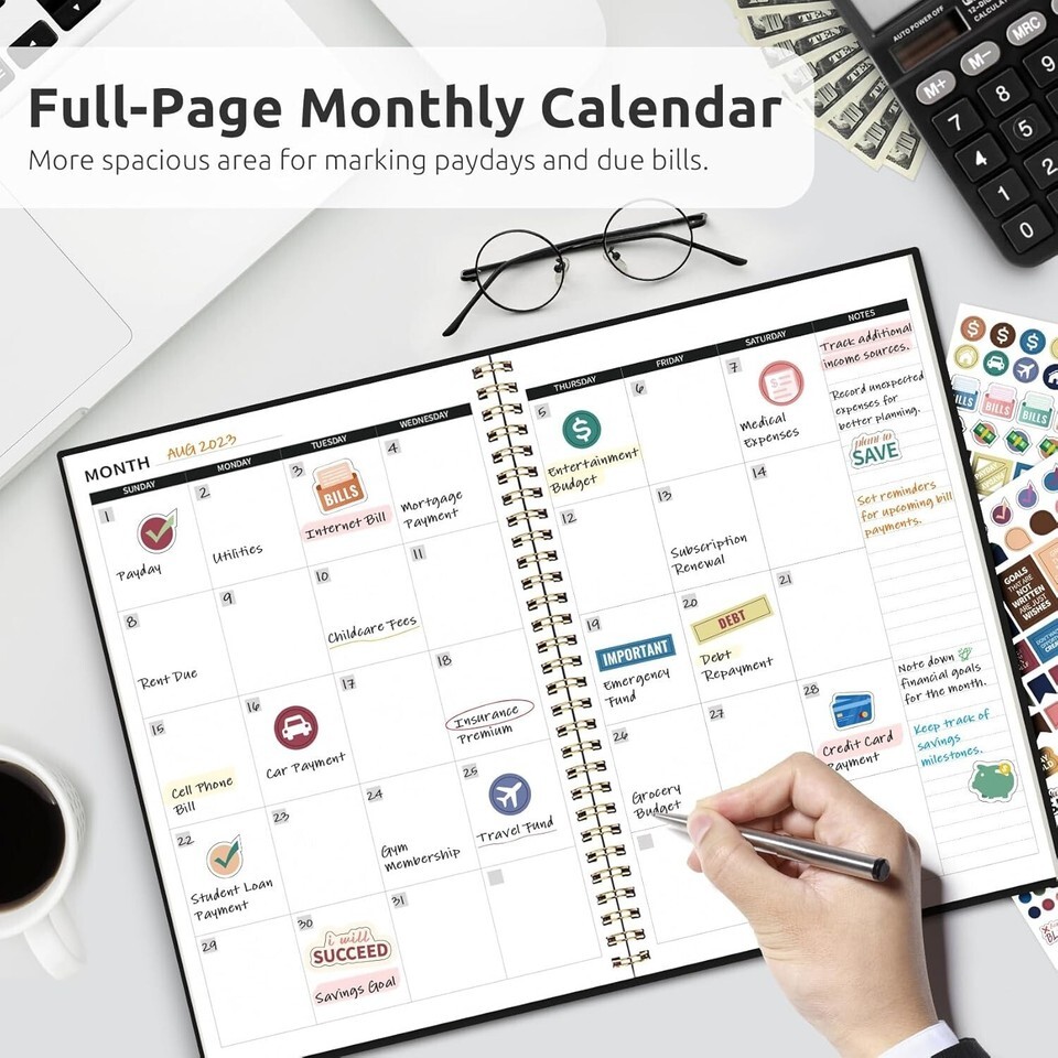 - Comprehensive Monthly Budget Book with Full-Page Calendars & Stickers, 2024-2025