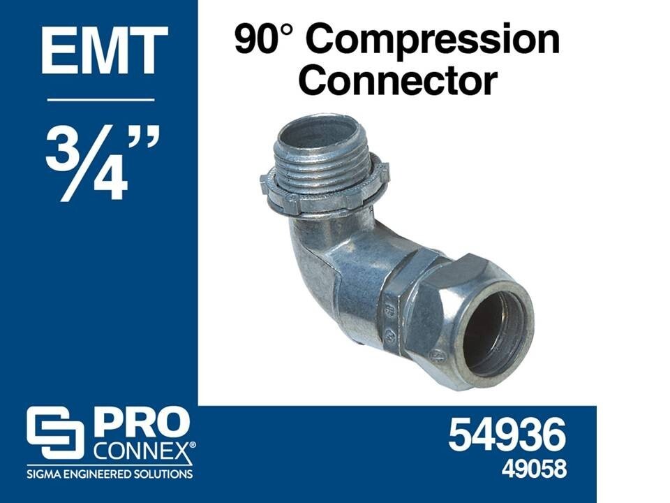 - Compression Connector 3/4" D 90° Die-Cast Zinc For EMT - Sigma 49058 ProConnex