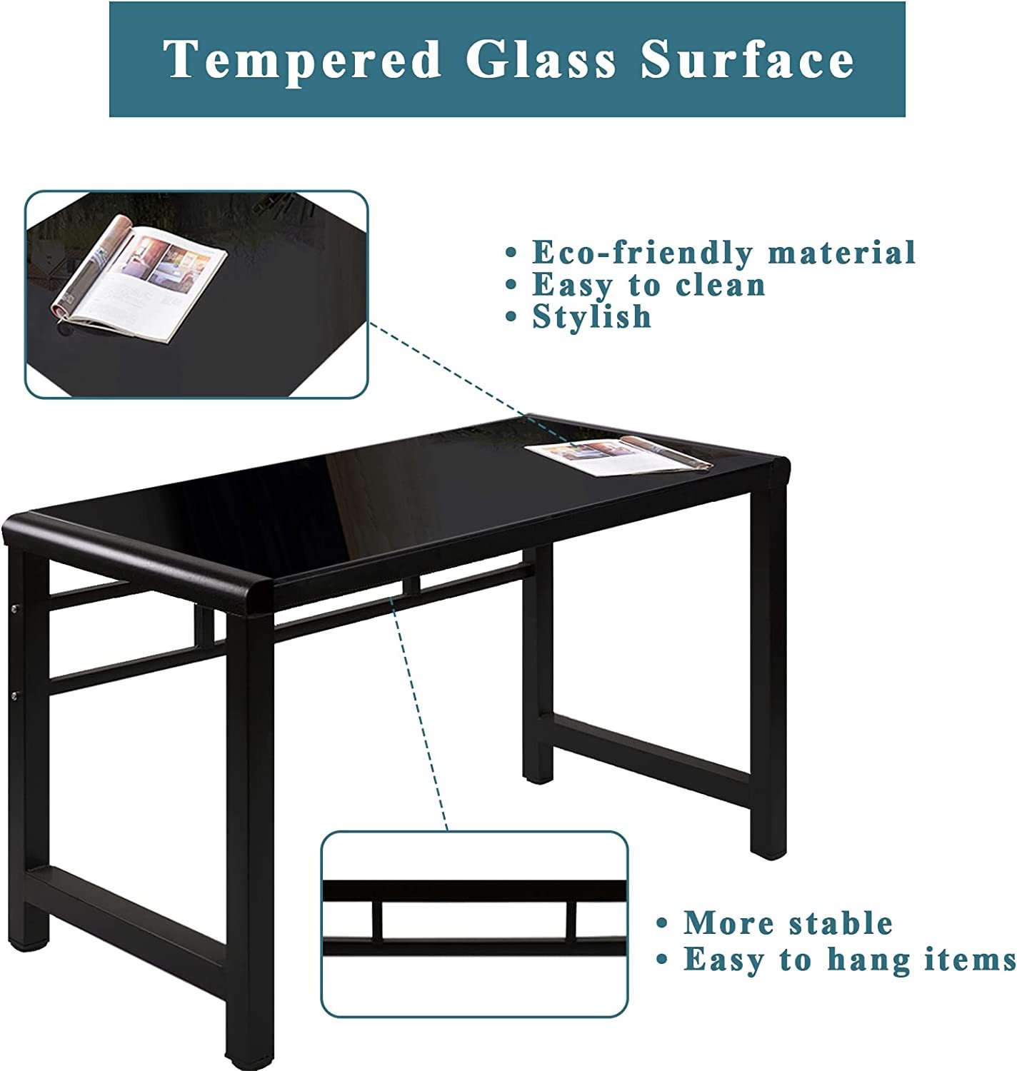- Computer Desk 47.2" Tempered Glass Desk Study Writing Table Personal Workstation