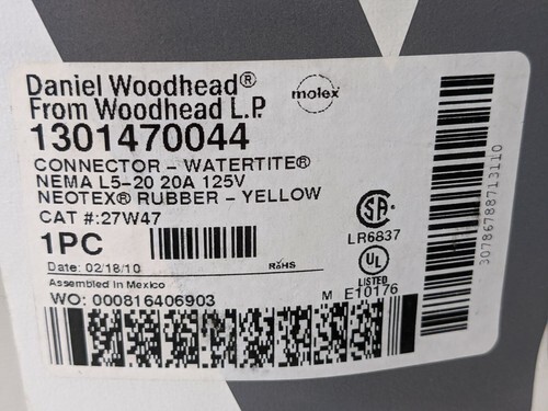 A vendre est un nouveau dans la boîte ouverte Daniel Woodhead 1301470044 L5-20 20A 125V Eautite Connecteur 27W4 Jaune