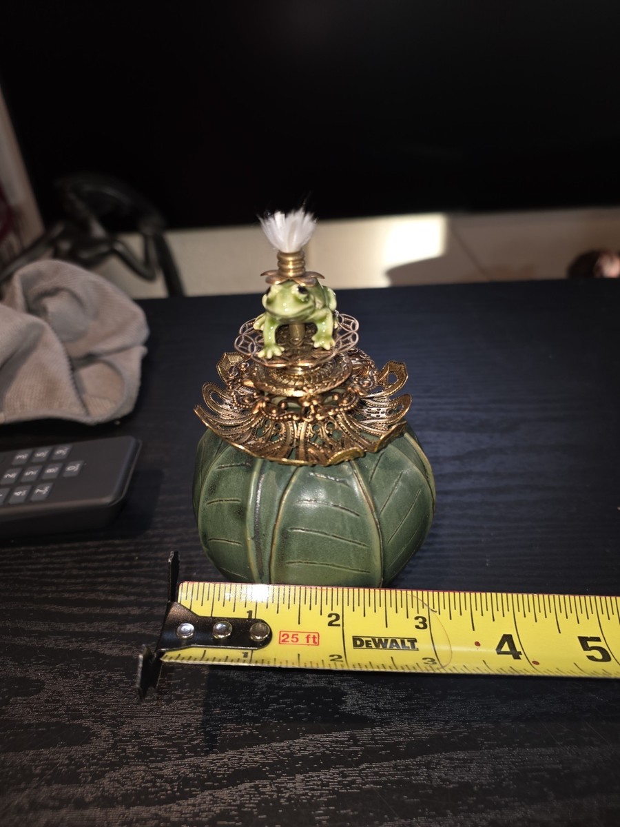 - Connie Sicotte Frog on Lily Pad Fragrance Oil Lamp Burner Collectible Brass