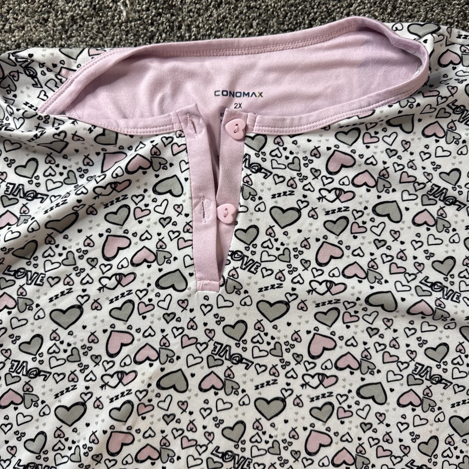 - Conomax Sleepshirt Pajama Shirt Sleep-Dress Nightgown 2X Women White w/ Hearts