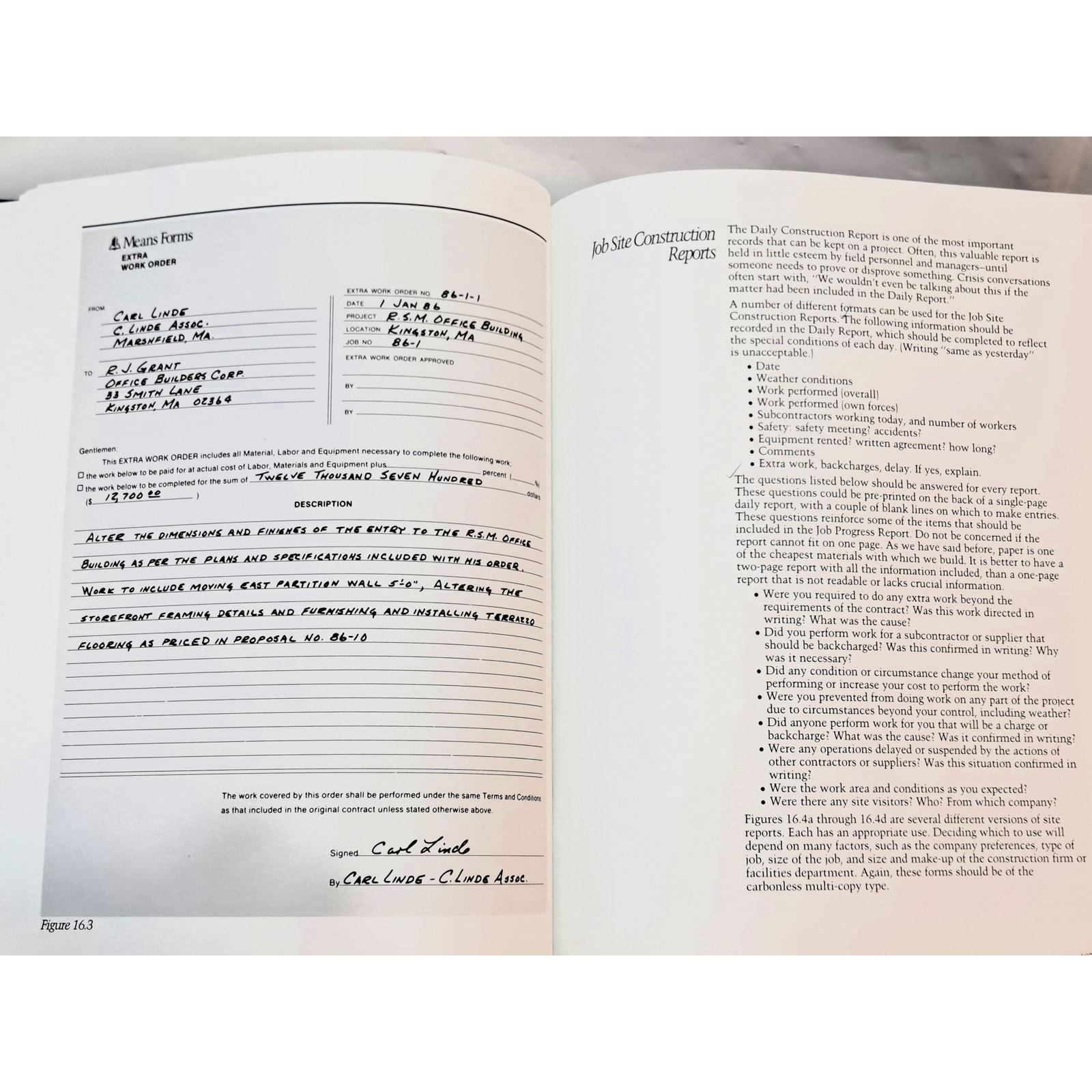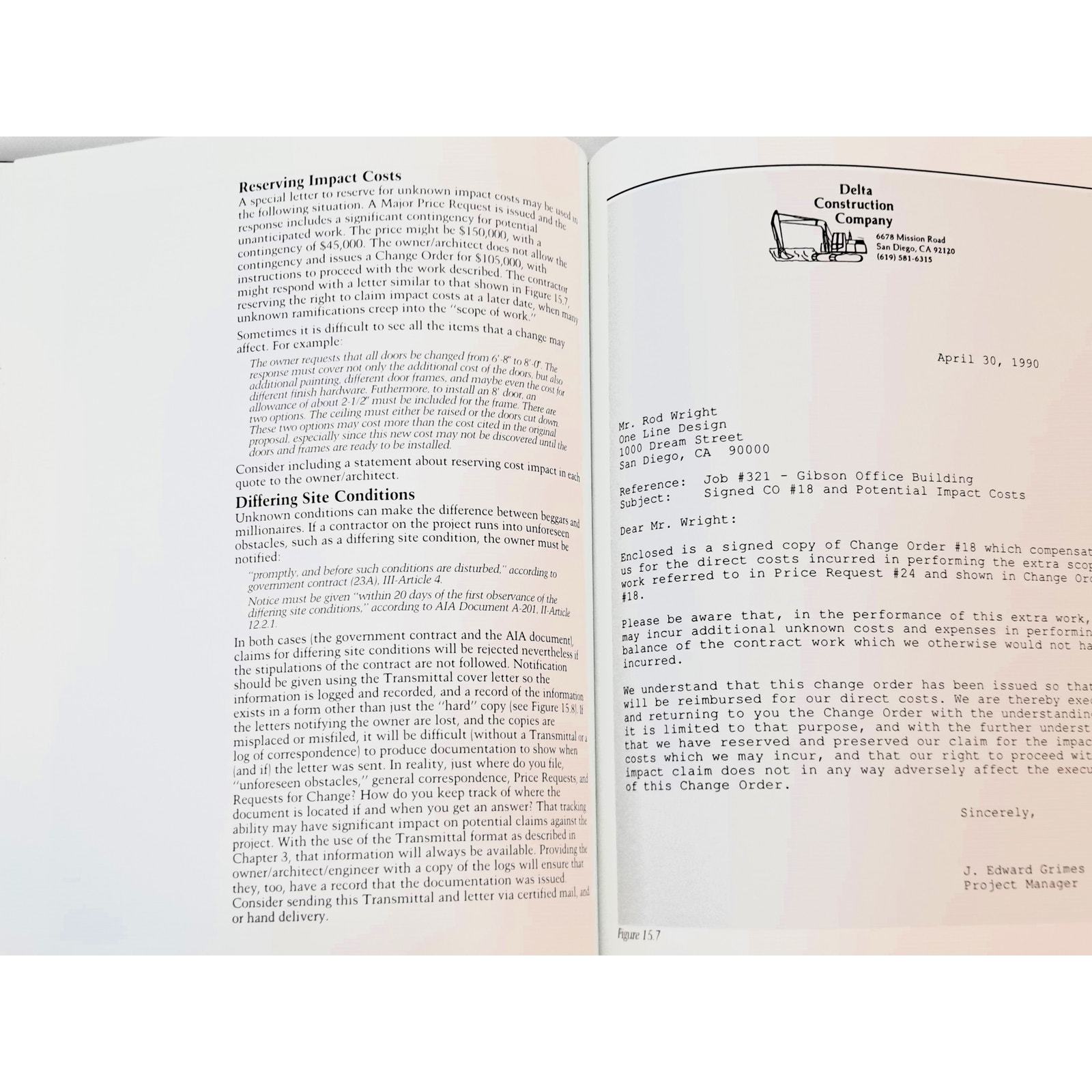Grimes shares twenty years of project management experience. Each step of construction documentation is shown and explained with example situations and sample forms. Text stresses the advantages of proper communication, notification, and documentation to manage construction expectations, as a crucial technique to limit exposure to liability.