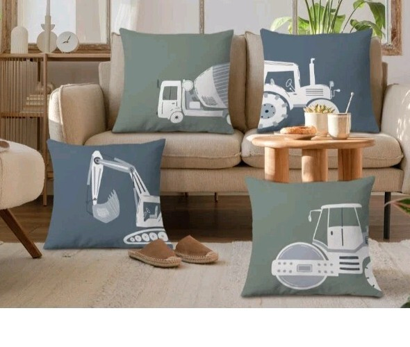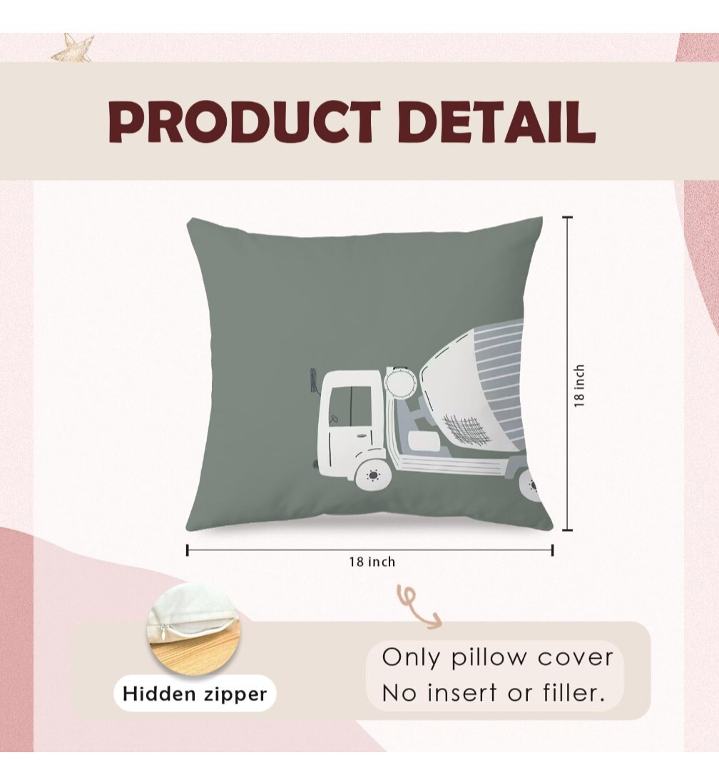 This is a brand new set of four adorable construction themed pillow covers for a child's bedroom. Super soft material! These pillow cover is measure 18 by 18 in. Please note they do not come with the pillow inserts! Pillow inserts must be purchased separately. These are the covers only. Brand new