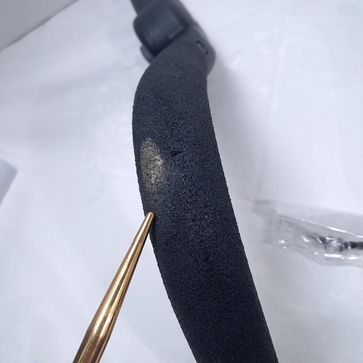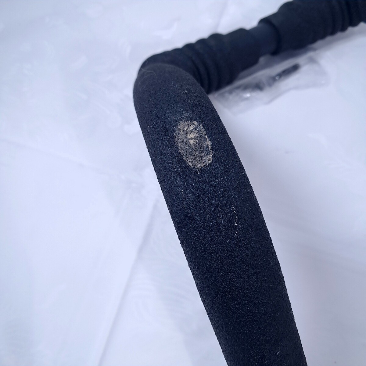 Stroller handle does NOT change positions and is missing the button on one side as shown. Wear/small tear as shown. See all pics