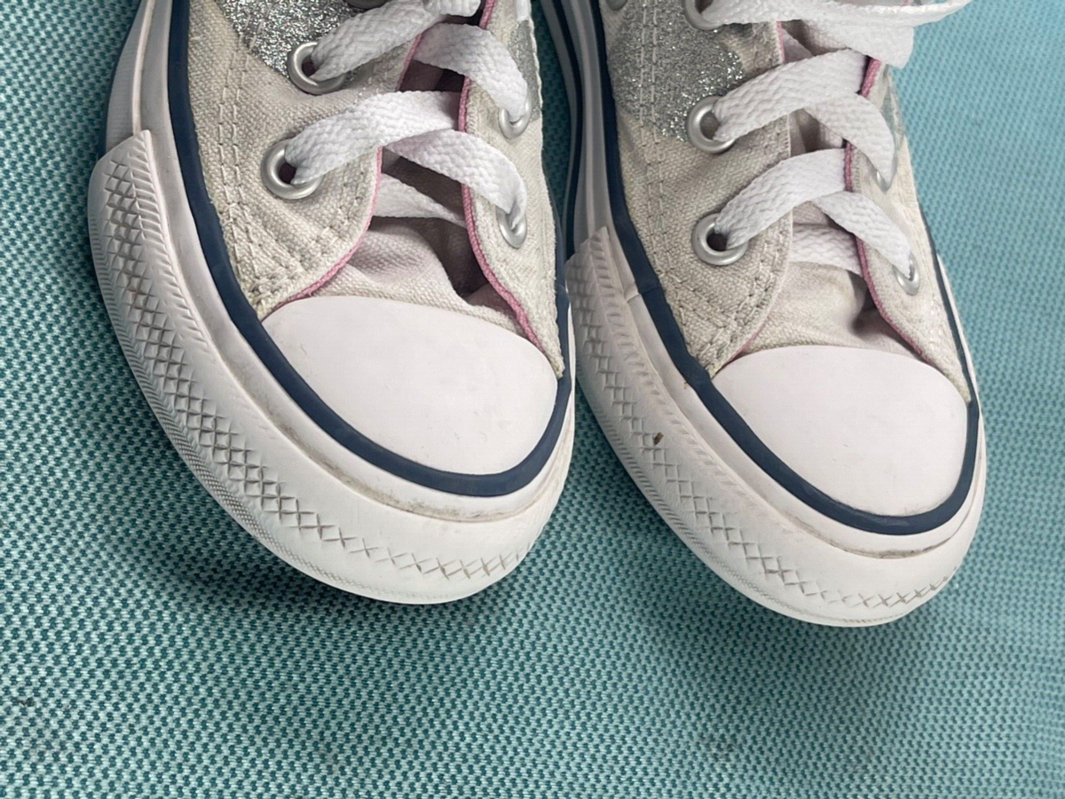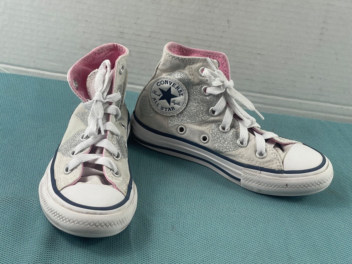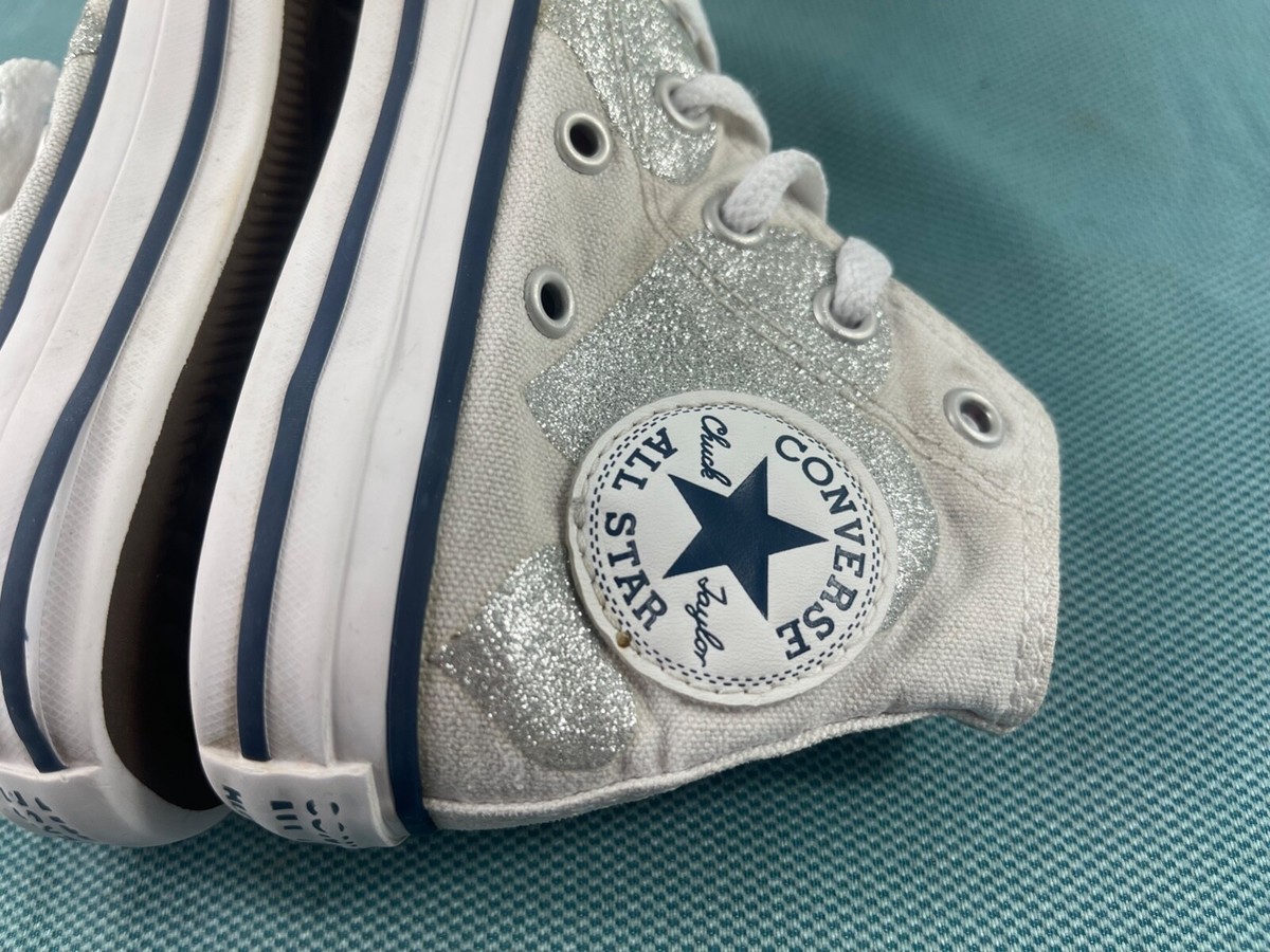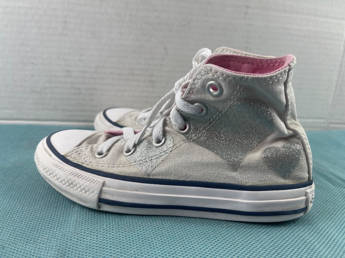 - Converse All Star Ctas Hi Top Sneakers Junior Girls 11 Shoe Silver Glitter Heart