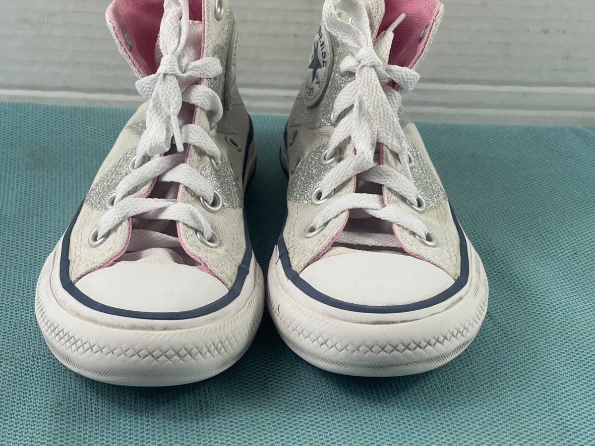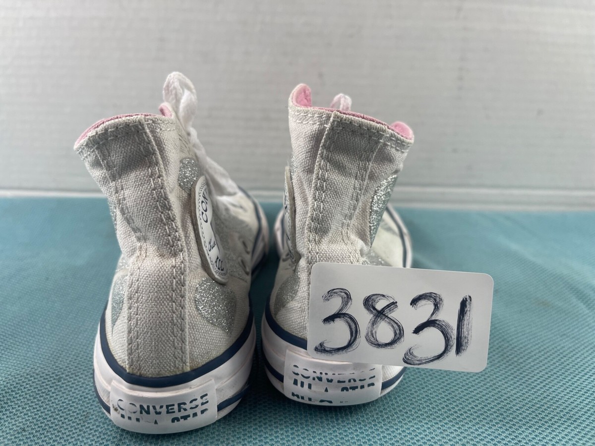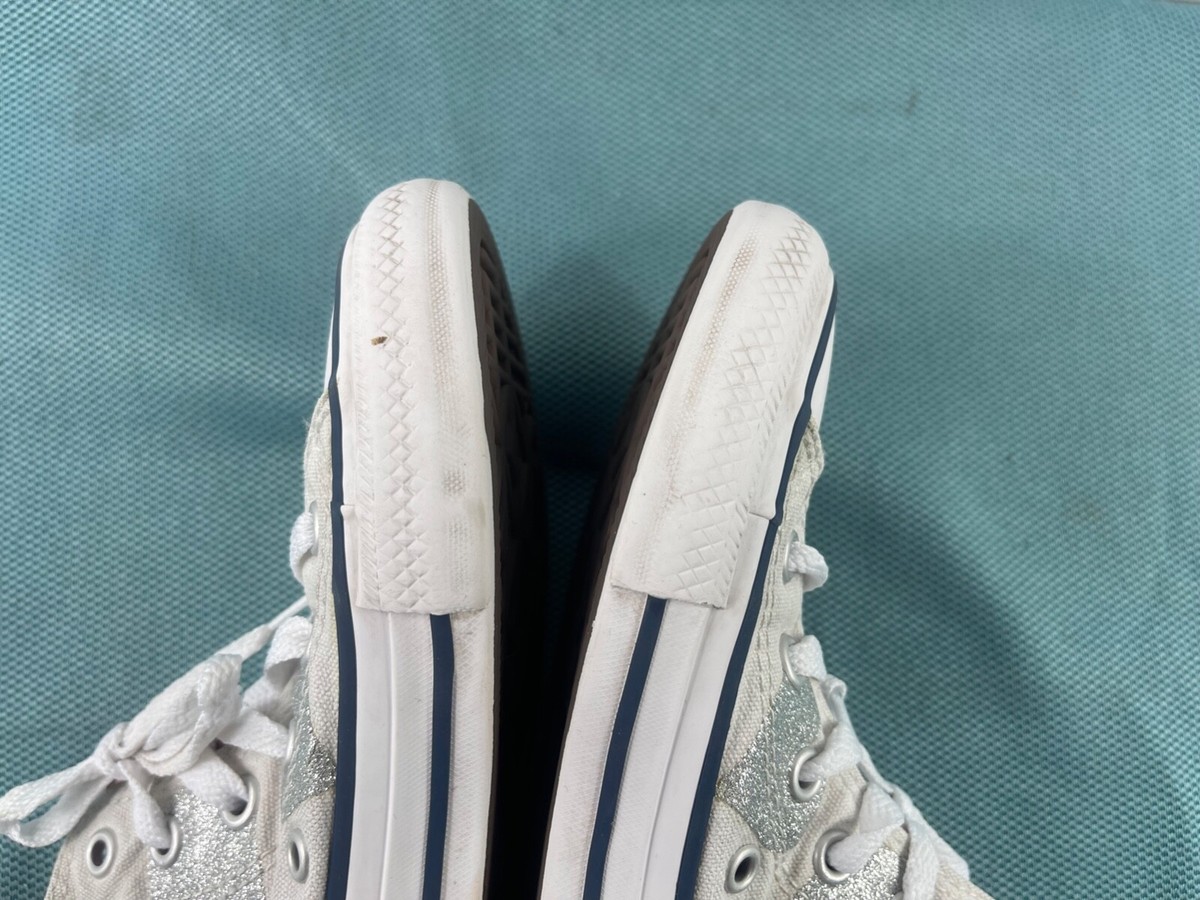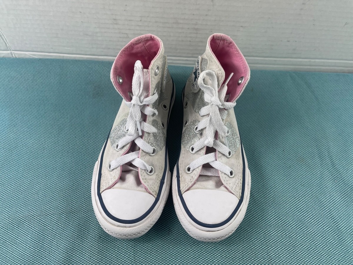- Converse All Star Ctas Hi Top Sneakers Junior Girls 11 Shoe Silver Glitter Heart