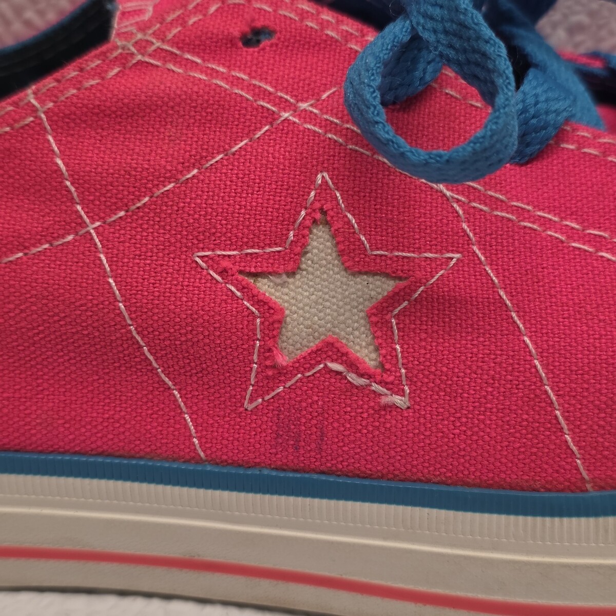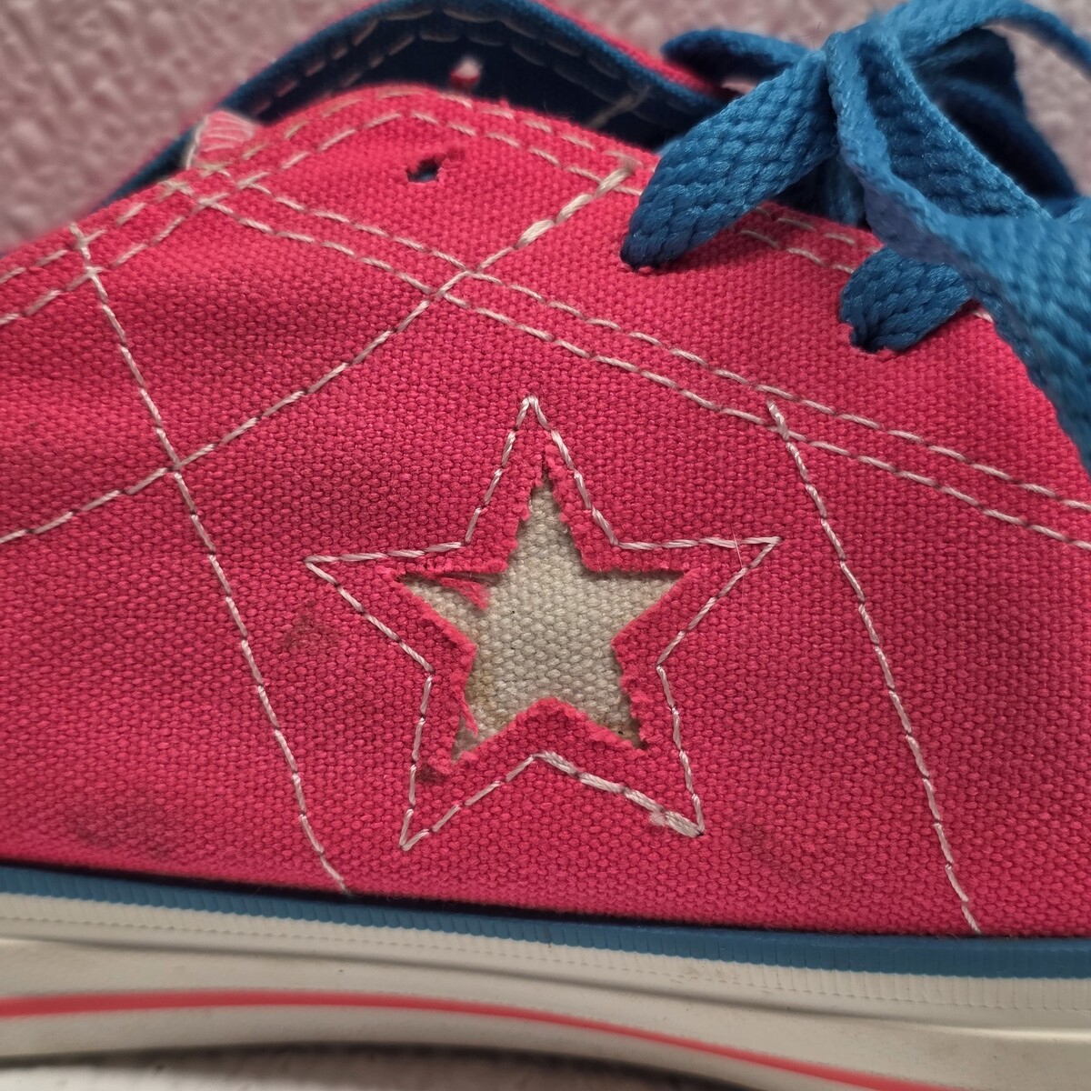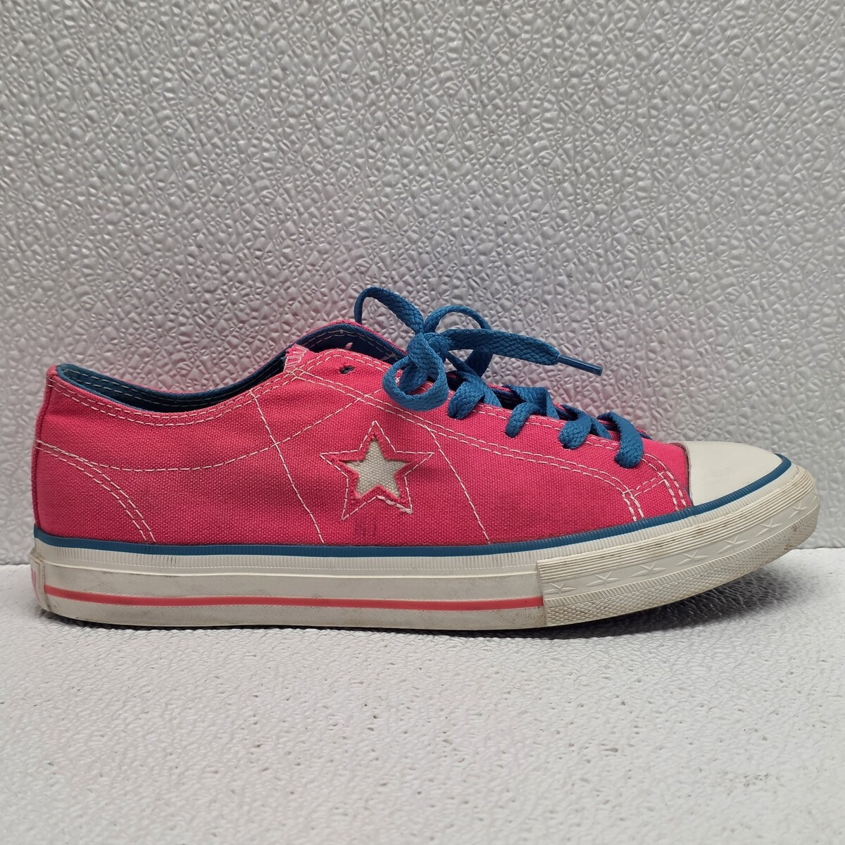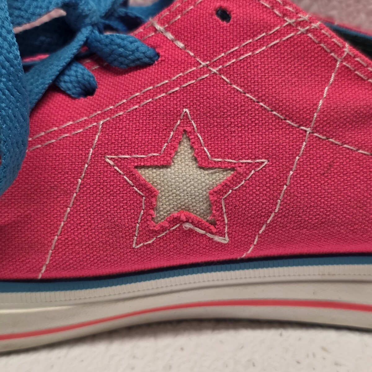 - Converse Womens One Star Size 8 Bright Hot Pink Blue Laces Canvas Low Top Shoes