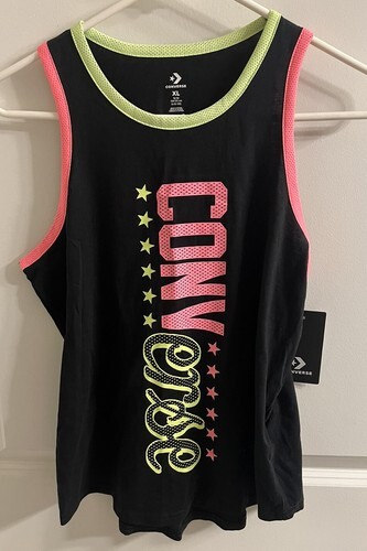 Converse girls black tank top w/ neon yellow & pink size XL stars sporty NWT