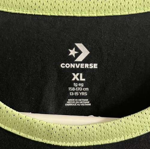 This Converse girls tank top is perfect for any sporty outfit! The black color of the tank top is contrasted with neon yellow and pink stars, making it a fun and playful addition to any wardrobe. The tank top is sized XL and fits comfortably, great for any girl who loves to play and move around.