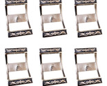 Lot of (6) 7/8" nickel plated floral accented conway buckles. Adds a unique flare to your favorite leather tack. Center post buckle lets you adjust from both ends.