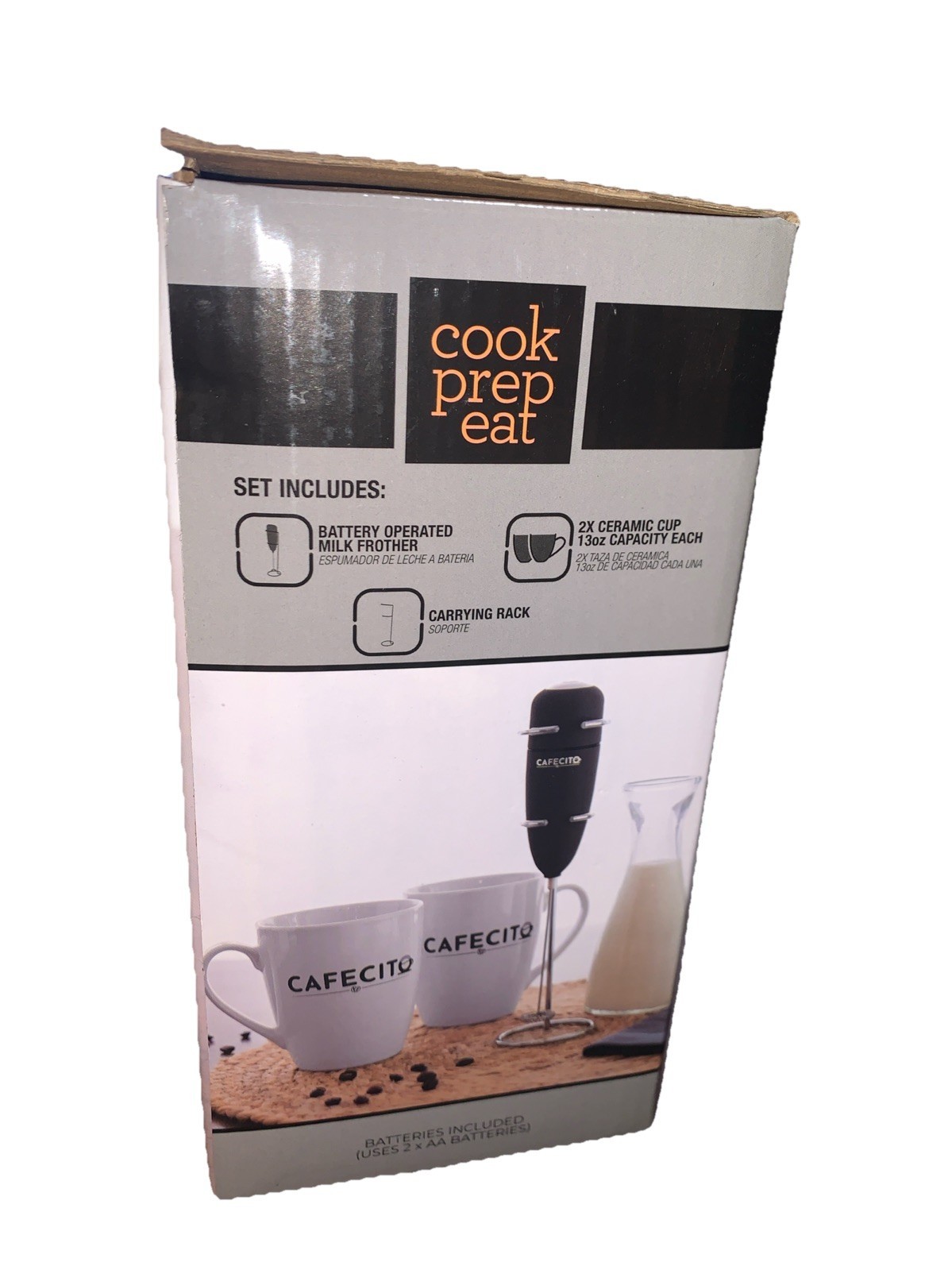 - Cook Prep Eat 4 Pc Espresso Set 2 Ceramic Mugs & Milk Frother with Carrying Rack
