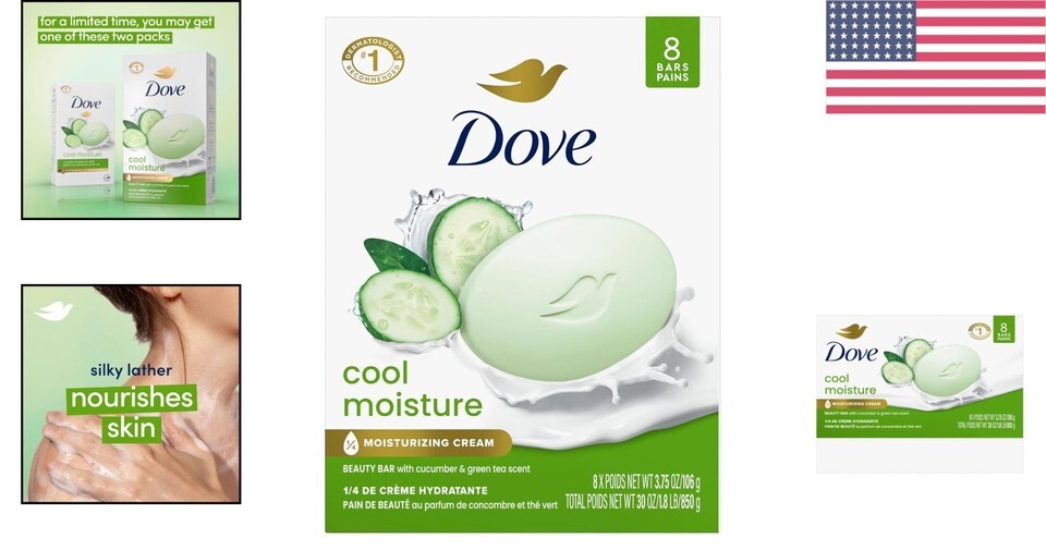 - Cool Moisture Beauty Bar 8-Pack - Cucumber & Green Tea Scent for Radiant Skin