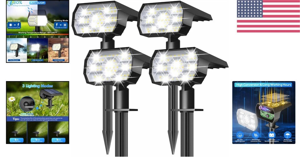 - Cool White Solar Landscape Lights - 56 LED, Waterproof & 3 Bright Modes, 4 Pack