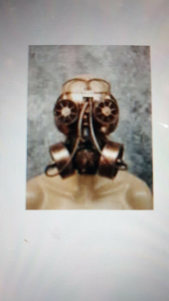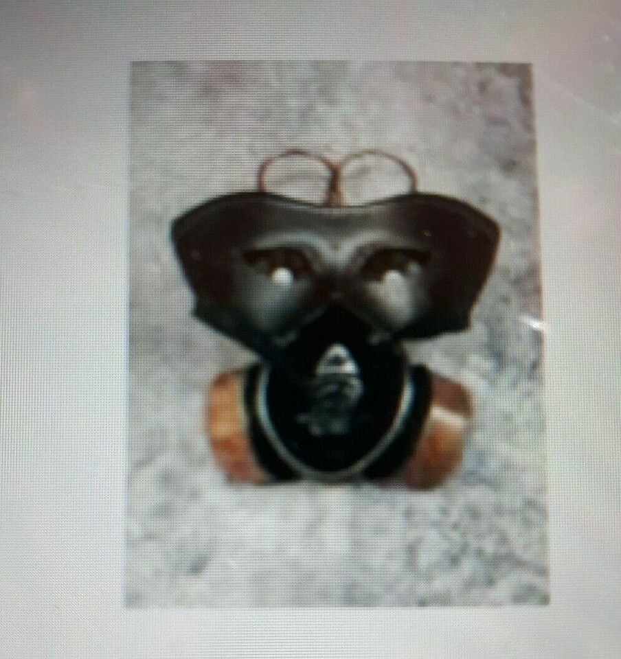 Creepy Steampunk Gas Mask themed Costume Eye / Face Mask. Adjustable elastic. For use as Masquerade, Dress up or Costume Purposes only. Looks like mask is made of plastic. One Size Fits Most. Not For Ages under 12. Some overspray paint on elastic. DOES NOT INCLUDE MANNEQUIN.
