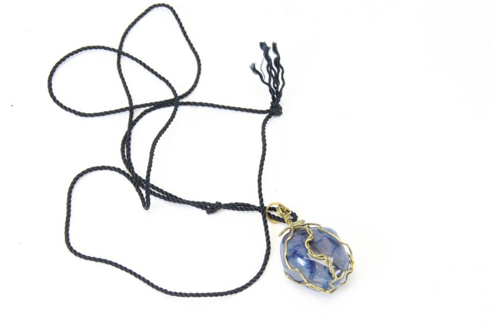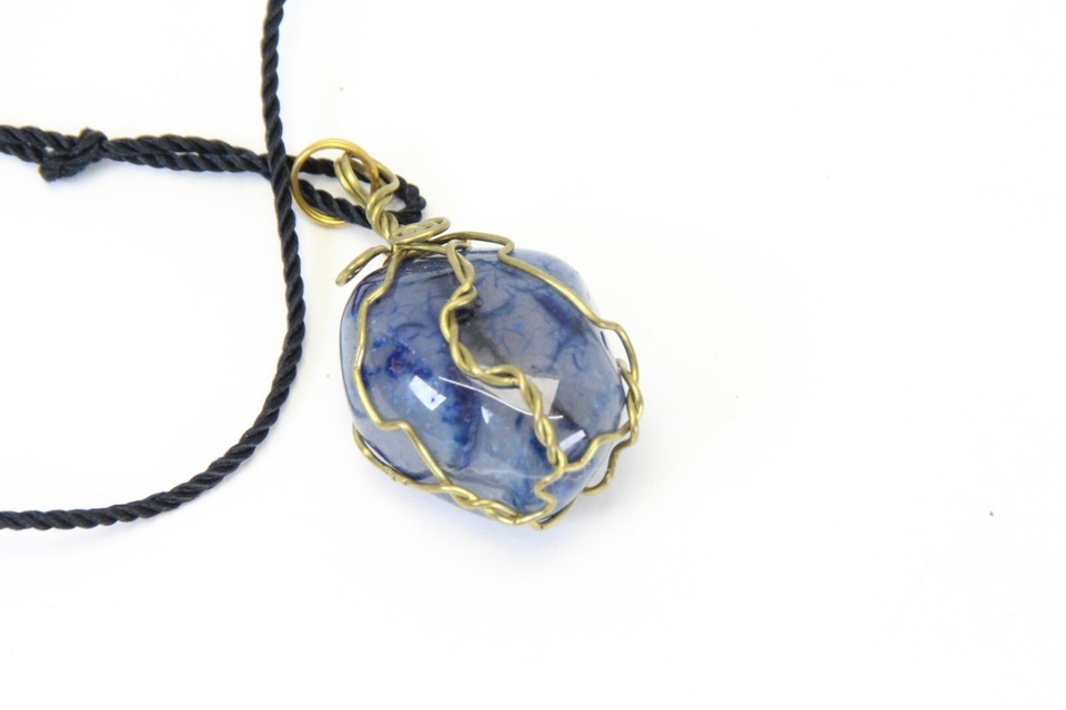 - Copper Wrapped Gemstone Necklace 1" W x 1 1/2" H with a 32" Cord Handcrafted