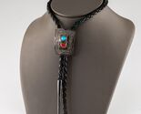 - Corbata Bolo De Cuero Trenzado Con Turquesa Y Coral De Plata Esterlina