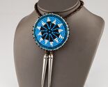 Corbata tipo bolo Sunburst con cuentas de semillas y hebras de cuero trenzado y herretes plateados