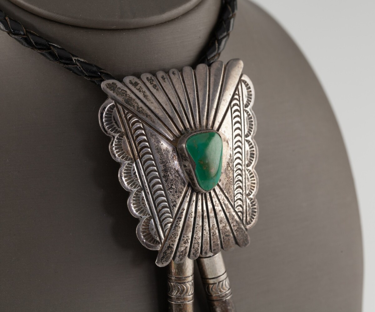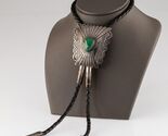 Corbata Bolo De Plata Esterlina Con Turquesa Y Cuero Trenzado, Un Aglet Faltante