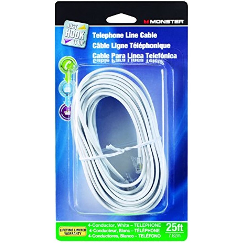 Monster Cable Just Hook It Up 25 ft. L White Modular Telephone Line Cable