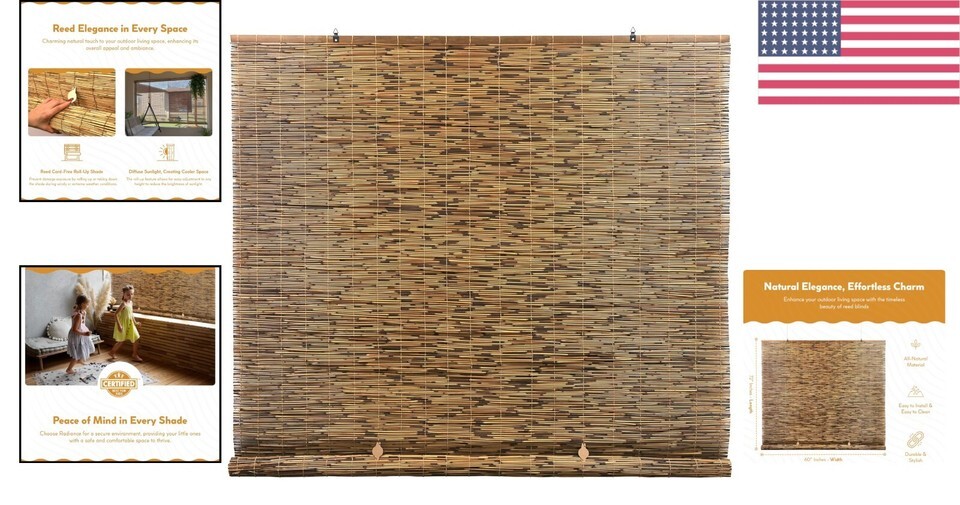 Cordless Bamboo Shades - Elegant Roll-Up Blinds for Indoor Outdoor Spaces ? ? ? ? ? ? ? ? ? ? ? ? ? ? ? ? ? ? Cordless Bamboo Shades Elegant Roll-Up Blinds for Indoor Outdoor Spaces Product Specifications: Material: Reed Bamboo Dimensions: 60"W x 72"L Roll-up: Manual Color: Rich Cocoa Features: ROLL-UP SHADE: Small gaps are normal and allow a soft glow. Each shade has a minimum length of 72". CORD FREE: Innovative adjustable fastener allows for height adjustment without cords. EASY INSTALLATION: Simple hooks make installing a breeze; hardware included. QUALITY ASSURED: Suitable for both indoor and outdoor use; please take down during windy or extreme weather. BEST FOR KIDS: Certified by the Window Covering Safety Council. Benefits: Transform Your Space: Add a touch of organic luxury anywhere in your home. Natural Cooling: Enjoy a gentle, filtered glow while maintaining comfort. Weatherproof Wonder: They hold up against the elements for outdoor use. Cordless Chic: A sleek, family-friendly design prioritizes safety without compromising style. Express Installation: Setup is completed in minutes for instant bliss. Child-Approved: Certified safety, allowing peace of mind in family spaces. Why Choose Our Cordless Bamboo Shades? Imagine lounging on your porch, shielded from the harsh sun, while enjoying the sheer elegance of our Cordless Bamboo Shades. These meticulously crafted shades don?t just look luxurious; they?re multifunctional, offering privacy, style, and durability all wrapped in one. Your personal climate control is just a roll away, delivering a gentle, natural breeze into your oasis. Why choose between design and safety when you can have both? Upgrade your spaces with the beauty, ease, and functionality of our Cordless Bamboo Shades?an effortless elevation of your home?s aesthetic. Order yours today and bask in the luxury you deserve! Shipping Free Fast Shipping - We offer free shipping to most of the USA with a normal delivery time of 3-7 days. However, due to the current situation, additional delivery time (up to 3 weeks) may be required for some items. Alternative Carriers - We may use alternative carriers (e.g. USPS, FedEx, UPS, etc.) to ensure your package arrives safely and on time. Due to the use of multiple carriers, we are unable to provide a tracking number automatically. Handling Time - Orders are processed and shipped within 1-2 business days of receiving cleared payment. Shipping Restrictions - Shipping to Alaska, Hawaii, Puerto Rico, Guam, and other US territories may incur shipping charges or delivery restrictions. Please contact us before ordering, or your order can be refunded/cancelled. State Restrictions - There may be restrictions based on your state of purchase. For example, certain items may not be shipped to California due to state regulations. Contact for Tracking Updates - If you require tracking updates or have any concerns about the delivery of your order, please feel free to contact us, and we will be happy to assist you. Return 30-Day Hassle-Free Returns - We want you to be completely satisfied with your purchase. If you are not, you can return the item within 30 days of receiving it for a full refund or exchange. Easy Return Process - To start a return, simply contact us and we will provide you with a prepaid return shipping label and detailed instructions. Restocking Fee - There are no restocking fees for returns. However, the buyer is responsible for return shipping costs if the return is not due to a seller's error. Refund Processing Time - Refunds will be processed within 5 business days of receiving the returned item in its original condition. Payment We accept all major credit cards, PayPal, and Apple Pay for your convenience. Your payment information is secure and encrypted to ensure a safe and seamless transaction. Please complete your payment within 3 days of purchase to avoid any delays in shipping. Feedback Your feedback is extremely important to us. We strive to provide the best products and customer service possible. If you are satisfied with your purchase, please take a moment to leave us a positive review. If you have any concerns or issues with your order, please contact us before leaving negative feedback. We are committed to resolving any problems and ensuring your satisfaction. Contact Us If you have any questions or concerns, please feel free to reach out to our customer support team. You can contact us through the messaging system. We are available Monday to Friday, 9:00 am to 5:00 pm EST, and we will do our best to respond to your inquiry within 24 hours. Buy it now and enjoy a pleasant shopping experience! UPC: Not Set Manufacturer: Bamboo Roll-Up Shades Model: Bamboo Roll-Up Shades Item Height: Bamboo Roll-Up Shades Unit Quantity: 60 x 72 Features: Cordless,Cord Free,Roll-Up Shade,Easy Assembly Department: Adults,Kids,Unisex Baby Toddler Frame Thickness: Made to Measure Care Instructions: Easy Care,Spot Clean Brand: Unbranded Type: Roller Shade Color: Cocoa Material: Bamboo Item Width: Not Set Transparency: Semi-Sheer Item Length: Not Set Room: Porch Pattern: Solid Style: Modern Mounting: Outside Mount Size: 60" W x 72" L MPN: Not Set Item Weight: Light Smart Home Protocol: Not Set Adjustability: Not Set Year Manufactured: Not Set Smart Home Compatibility: Not Set Country/Region of Manufacture: Not Set Compatible Window Type: Not Set Slat Size: Not Set Theme: Space Curtain Heading: Not Set Unit Type: Unit Personalize: Not Set