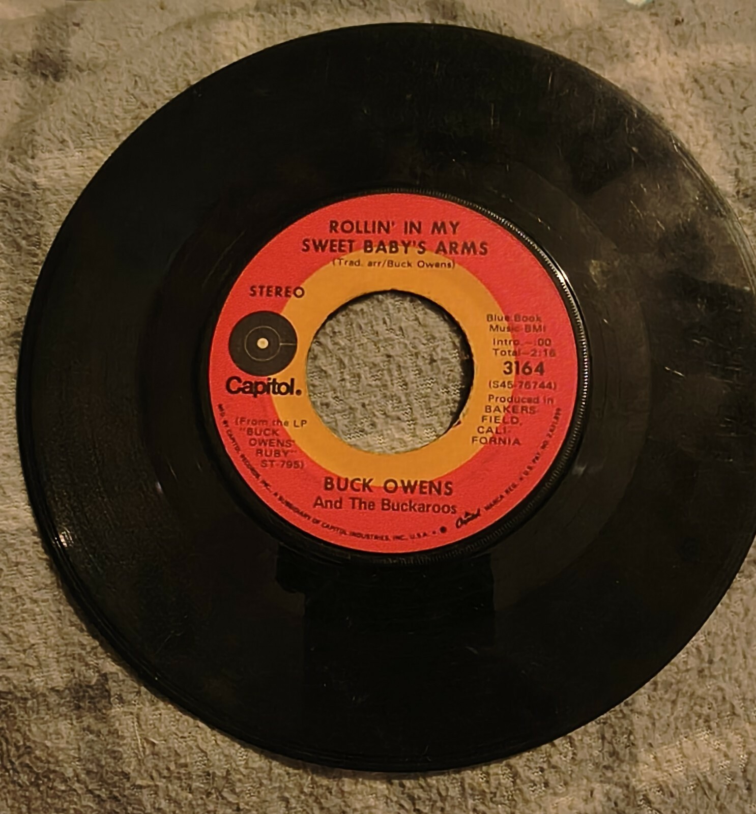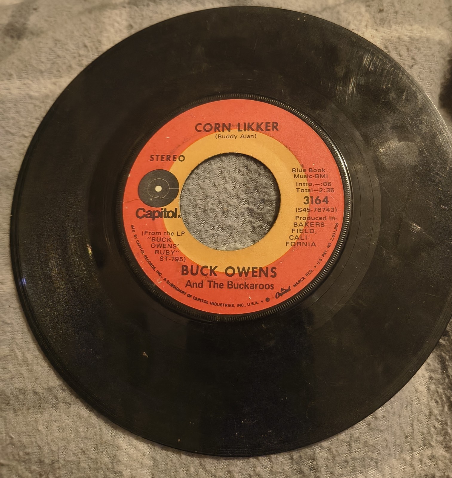 - Corn Likker / Rollin' In My Sweet Baby's Arms Buck Owens 45 RPM Vinyl Record Vtg