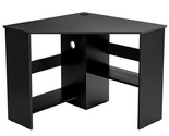 Corner Computer Desk Triangle Writing Workstation with Storage Shelf-Black - Col