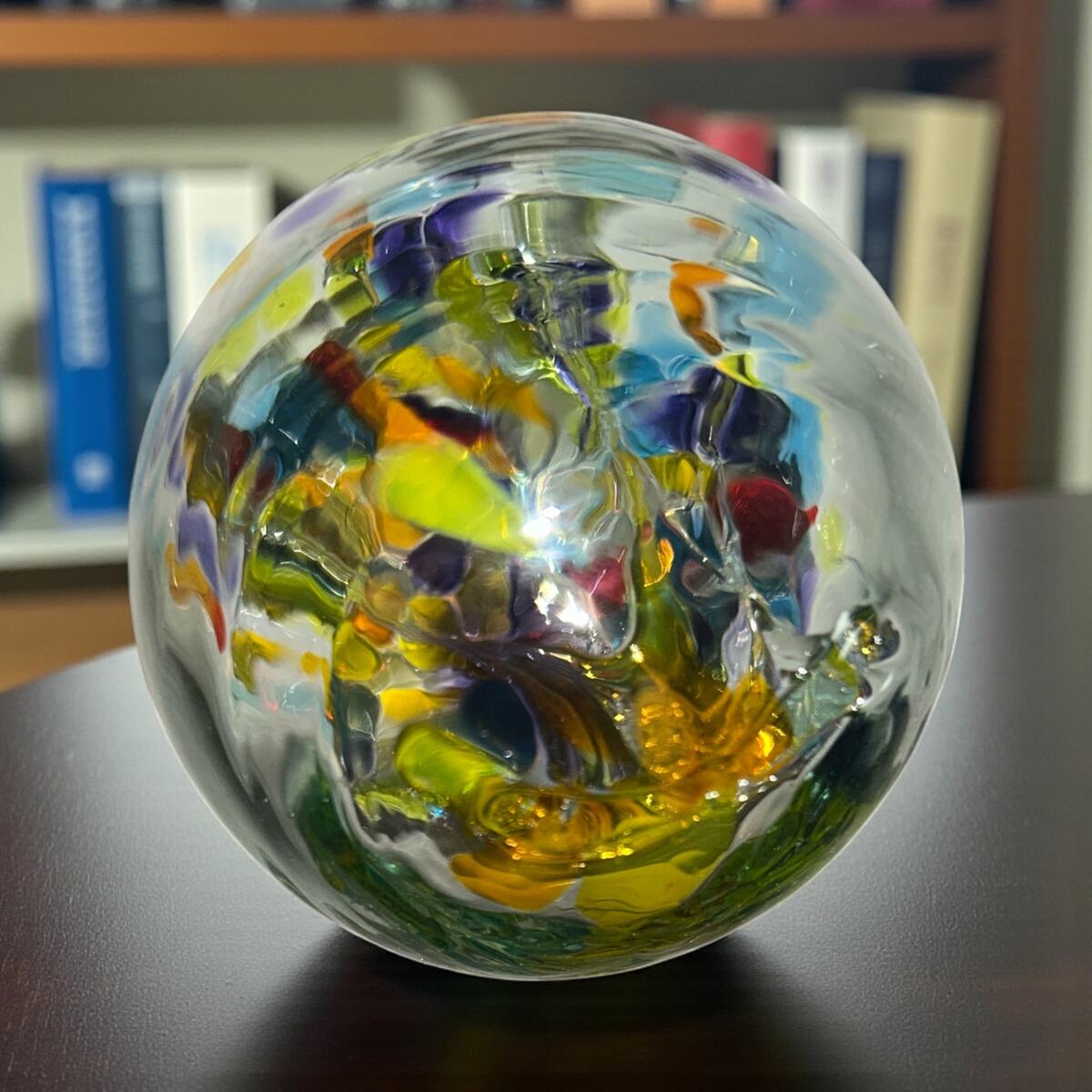 Beautiful, multicolored mint condition Corning Glass Hand Blown Chrismas Ornament. Very neat and unique/one of a kind ornaments!