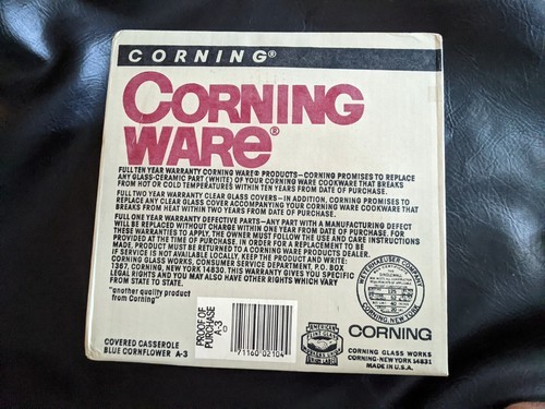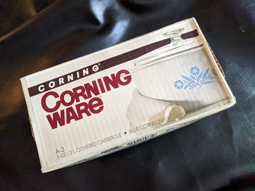 - Corning Ware 1984 3 Qt 3 L Blue Cornflower Covered Casserole A-3 Box NEW