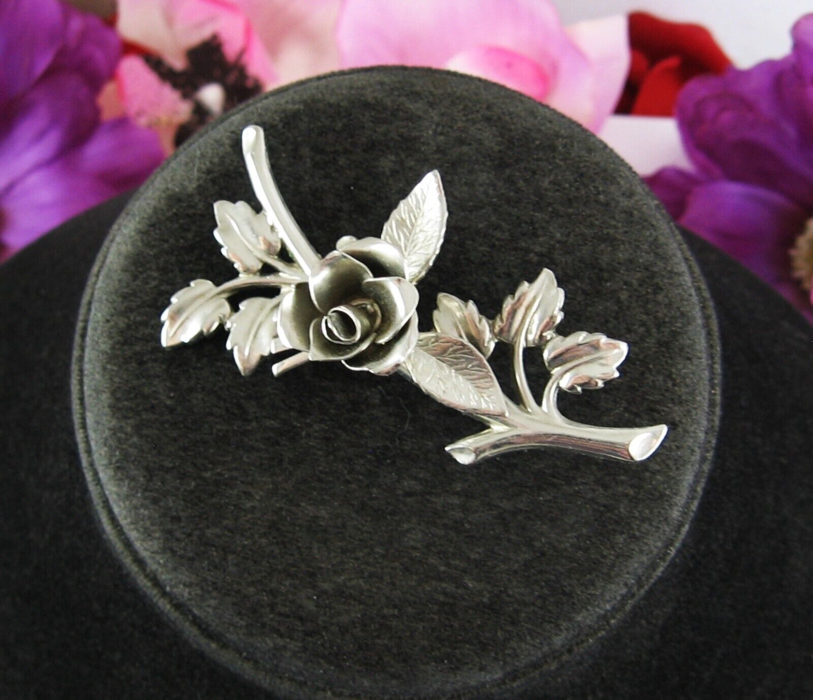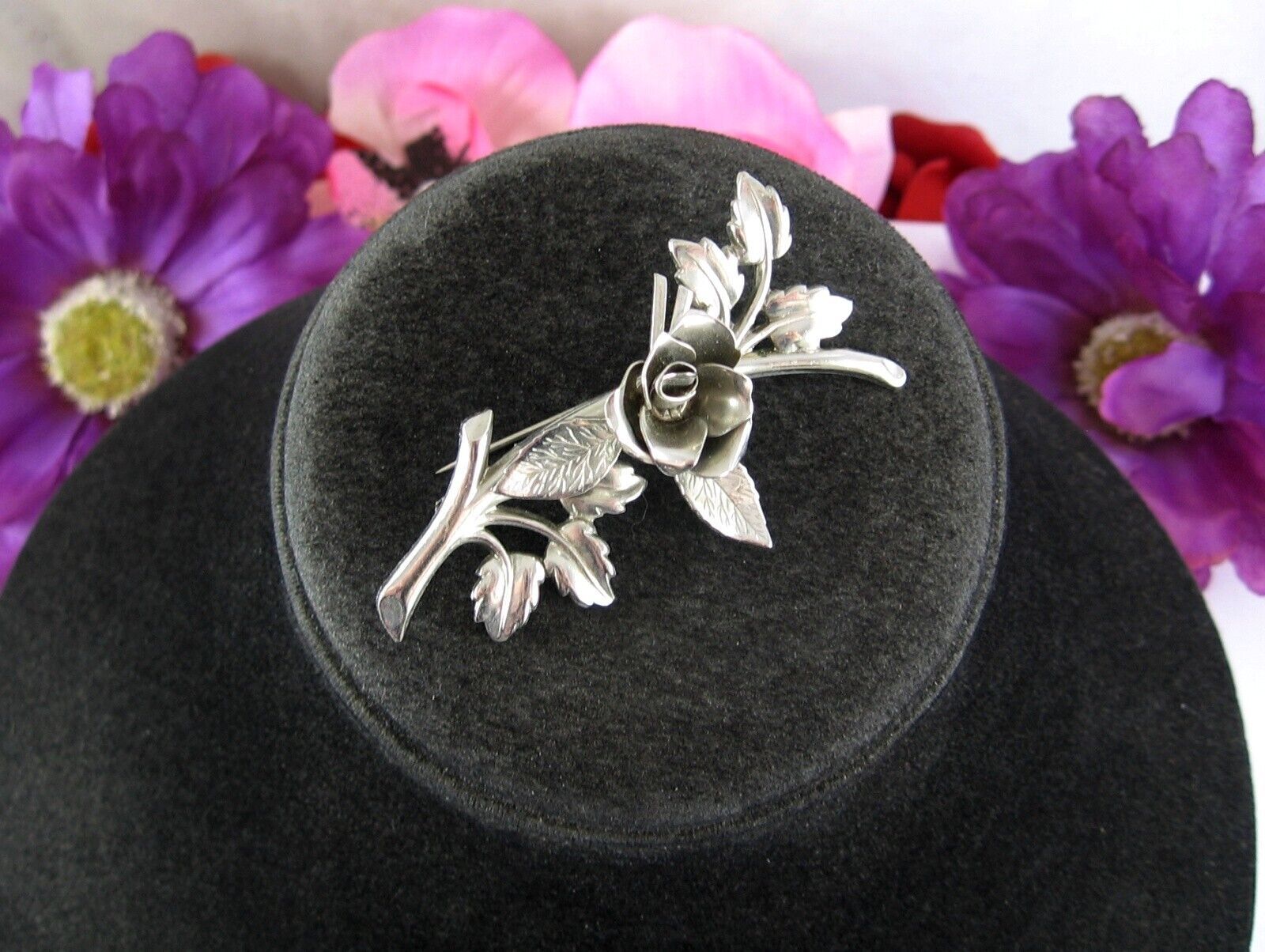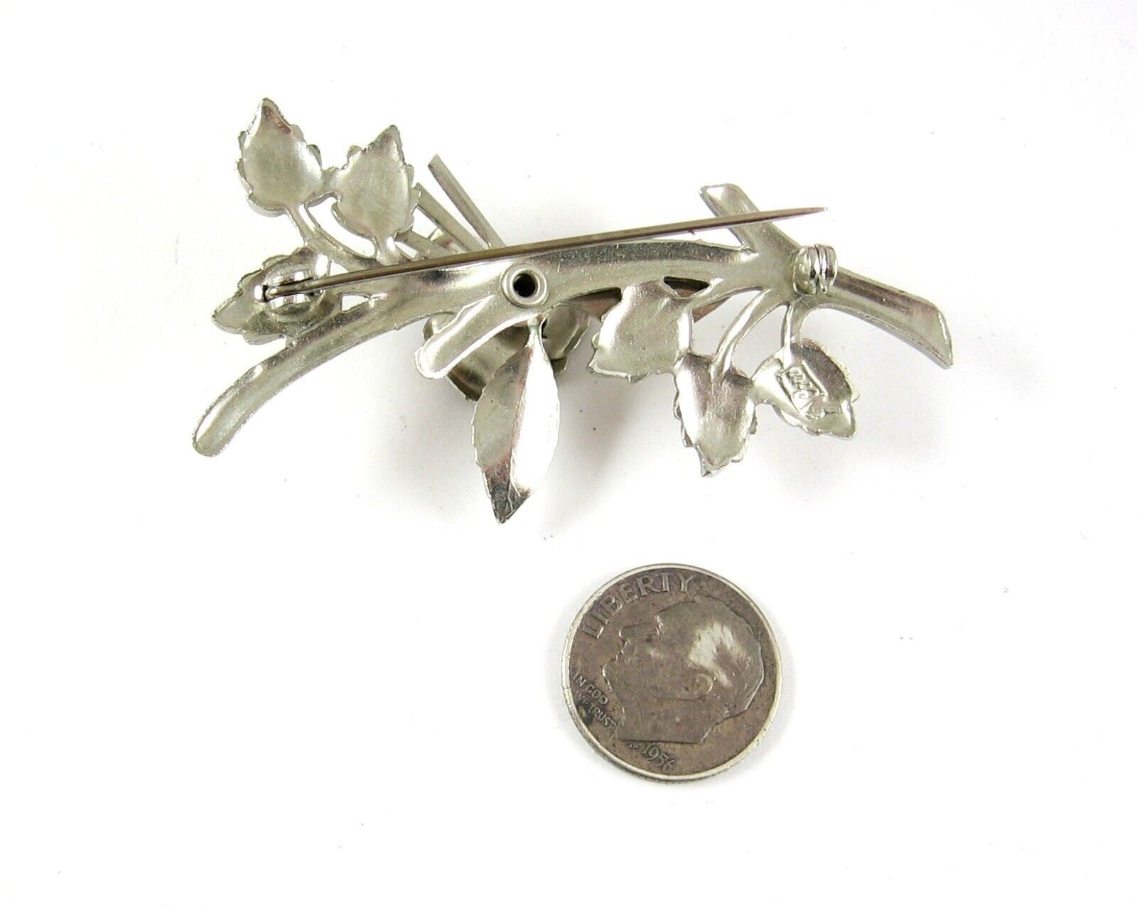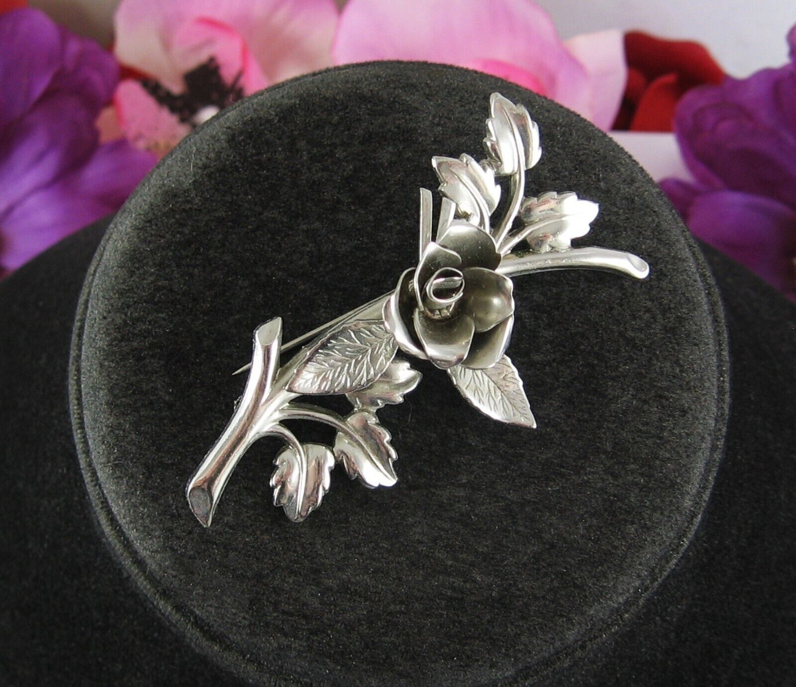 - CORO Pegasus Vintage ROSE BLOOM BROOCH Branch Flower Leaves Silvertone 2 1/2"