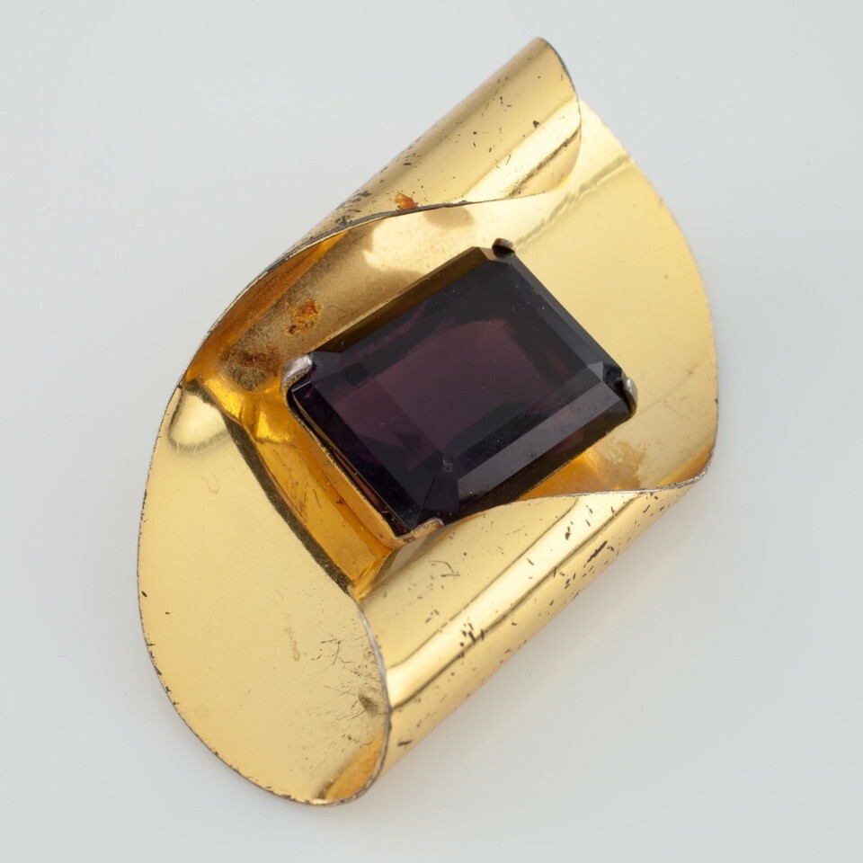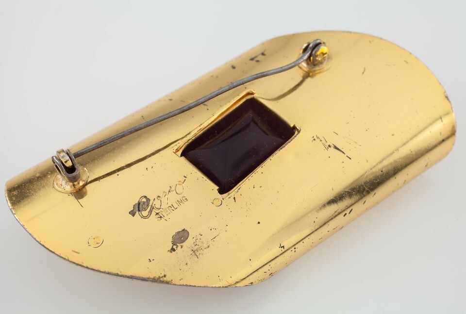 - Coro Vermeil Modernist Sterling Silver Gold Plated Brooch w/ Quartz Accent