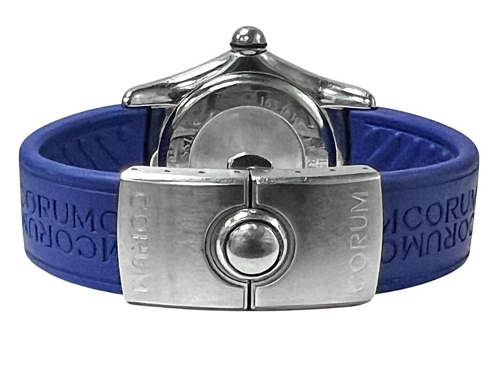 Type: Wrist watchBrand: CorumModel number: 39.151.47Case width: 33mmWeight: 52.0Bracelet length: 7"Movement type: Quartz (Battery)Case Material: Stainless SteelBox included: noPaperwork included: noRunning: yesDial color: MopBand material: SiliconeModel name: Ladies BubbleCondition:Used