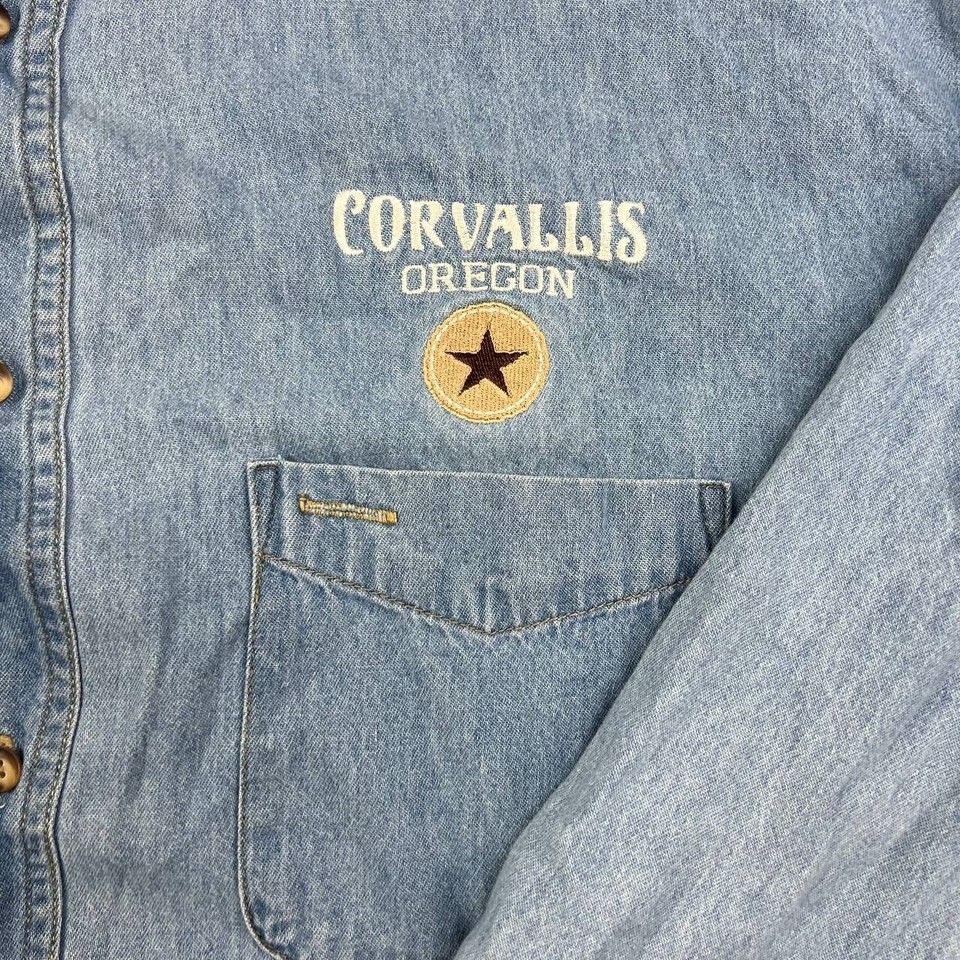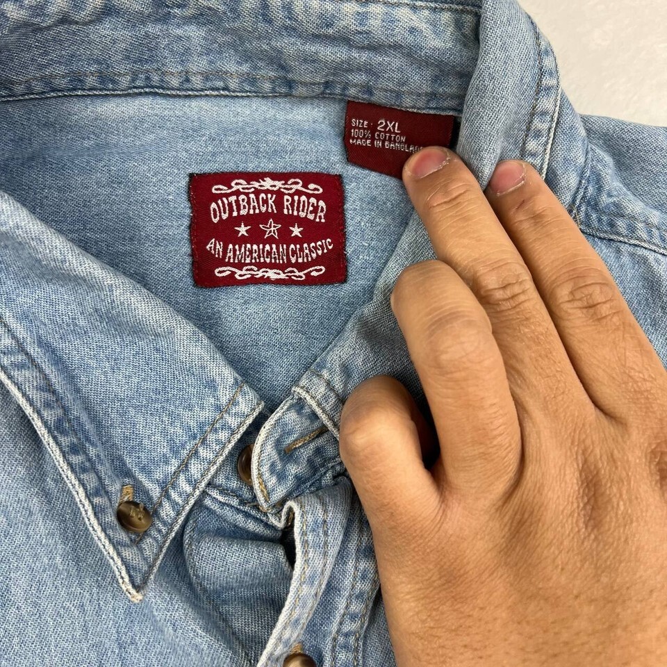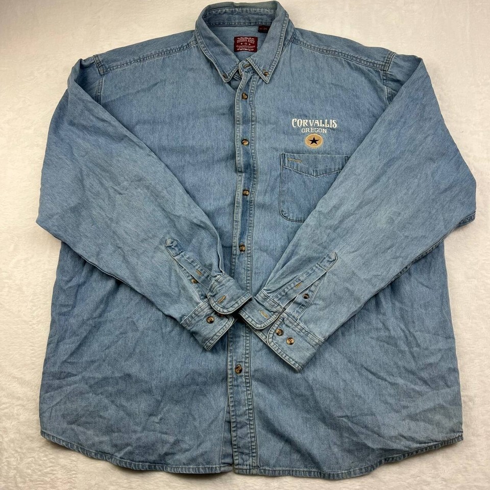 - Corvalis Oregon Outback Rider 2XL Denim Button Up Polo Shirt Men Blue Cotton XXL
