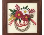 Cosmo New Year's Wreath Camellia Seasonal Flower Arrangement Cross Stitch Kit. This cross stitch kit comes with everything you need to make the beautiful seasonal floral project. January: New Years Wreath with Camellia. Kit Includes: COSMO Embroidery Floss (100 percent cotton), 1m each, COSMO Embroidery Cloth (100 percent cotton), Embroidery Needle, Square Wooden Frame 6.75 inches x 6.75 inches. Instruction Manual with Design Chart. Nishikiito Metallic Embroidery Floss. Frame Size: Approximately 6-3/4 inches x 6-3/4 inches. Difficulty Level: Intermediate. No. 592301. CHK-592301