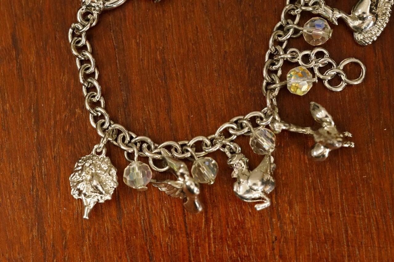 - Costume Jewelry 12 Days of CHRISTMAS Silver Tone Metal Charm Bracelet 8"