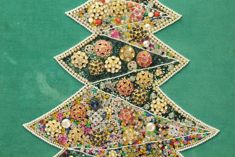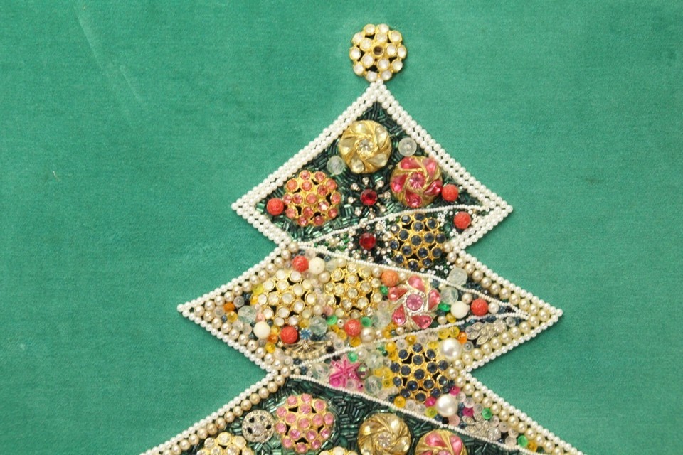 Vintage Rhinestone Jewelry Christmas Tree Framed Art One of a Kind