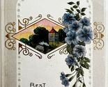 - Cottage Purple Flower Victorian Best Wishes Card Postcard 1900s Embossed PCBG11B