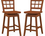 - Counter Height Barstools Set of 2 with 6-Grid Hollow Back and Seat-Brown - Color